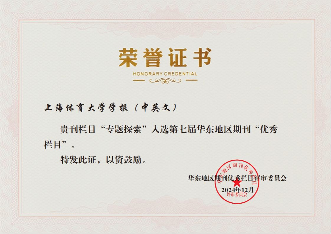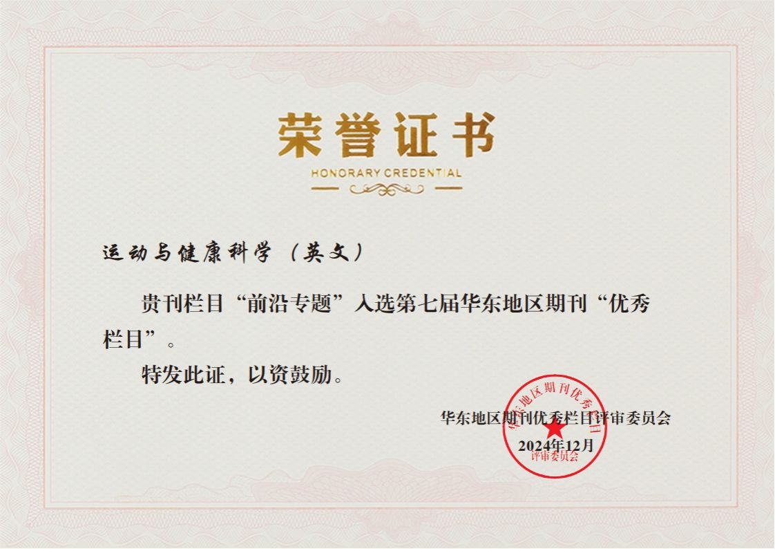 本次华东地区期刊协会联盟开展的“优秀栏目”评选活动,综合考评期刊政治、学术、编校、印制、发行等方面,全面评价期刊的社会影响和学术水平,入选期刊数量控制在各省(市)期刊总量的18%以内。《今年会网站学报》2020年1月推出“专题探索”栏目,邀请国内知名专家围绕体育学科前沿及相关领域最新热点话题进展专题研究,如“建党百年与中国特色社会主义体育发展道路”“‘双减’政策与学校体育发展”“体教融合促进青少年健康发展”等,为期刊学术质量和影响力提升提供重要支撑。《运动与健康科学(英文)》自创刊伊始即着力打造品牌栏目“前沿专题”,聚焦运动医学、慢病运动干预、锻炼与脑健康等研究领域前沿交叉研究,邀请国际顶尖科学家担任客座主编,精心遴选作者团队、恪守同行评审程序、严格把控稿件质量、拓展多元化推广渠道,彰显期刊国际化与本土化并行发展特色。