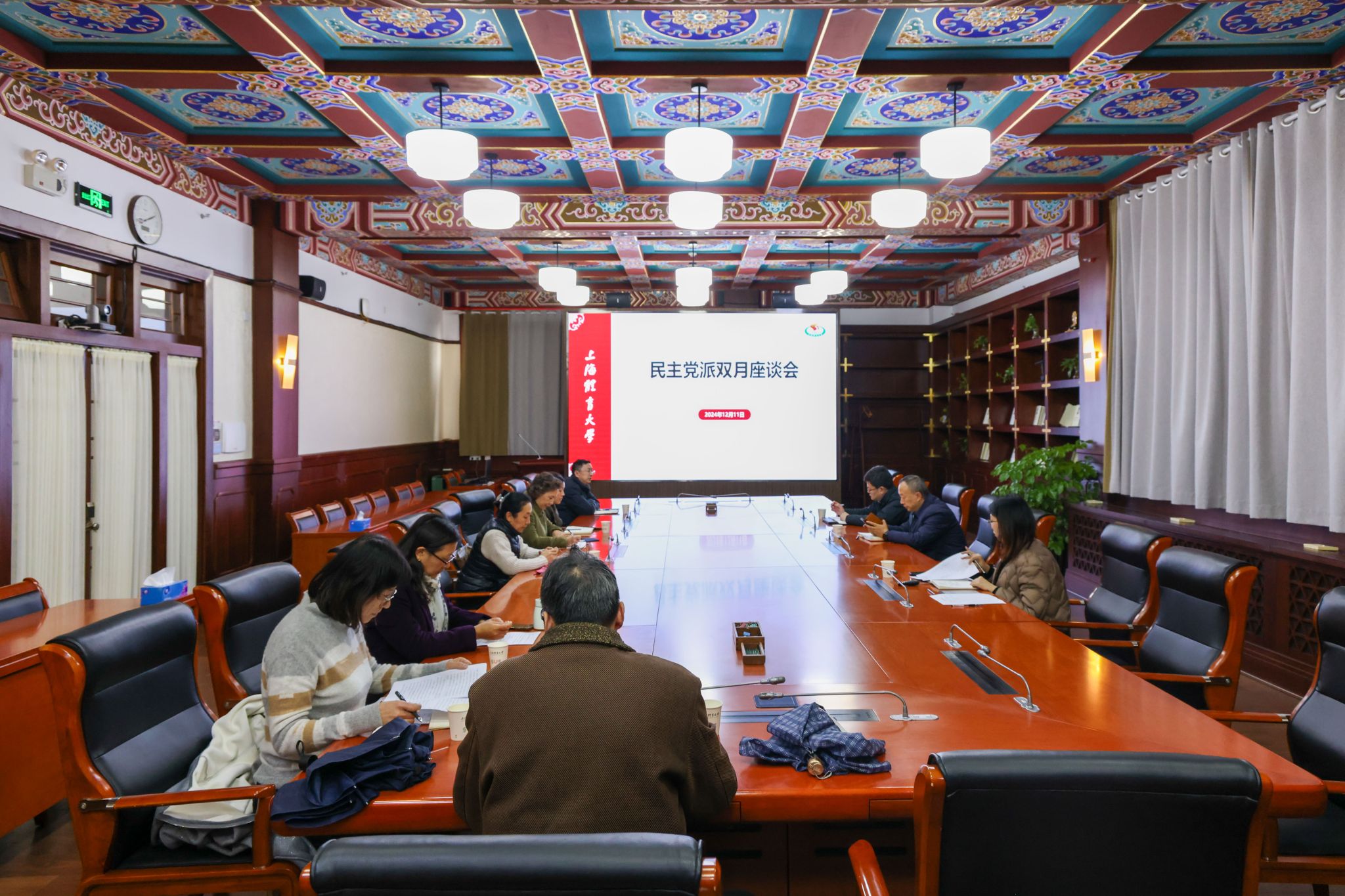 本网讯 12月11日下午,2024年度第五次民主党派双月座谈会在绿瓦大楼第四会议室召开,校党委副书记潘勤出席会议并讲话,各民主党派、统战团体班子成员参加了座谈会。会议由校党委统战部部长张盛主持。