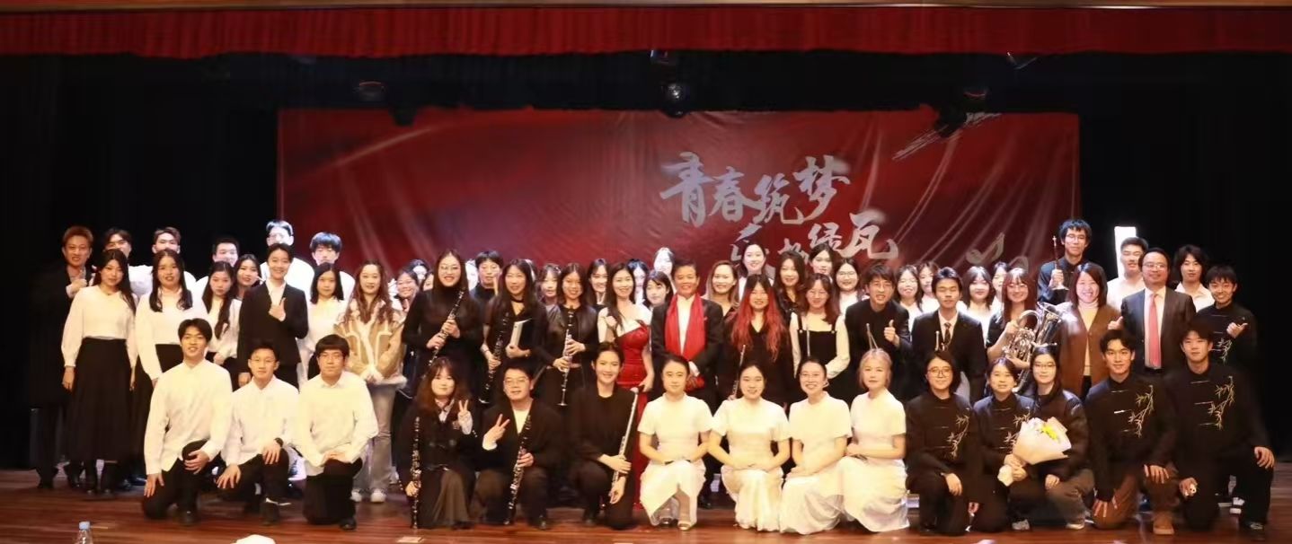 随后,金秋管乐团与学生管弦乐团联袂演奏的《新年好 + 友谊地久天长》将音乐会的气氛推向了最高潮,欢快的旋律传递出团结与友谊的美好祝愿。