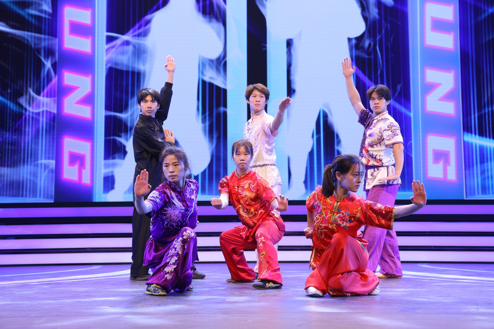 此次演出节目是由传统武术、舞龙舞狮、花样跳绳和艺术体操四个体育运动项目融合而成。表演中,上体学子尽显传统武术美学,从拳法到刀术,用苍劲有力的一招一式定格成“枪声刀影,鼓角齐鸣”的磅礴气势,充分展现了中华武术的独特魅力;舞龙舞则是狮手舞长龙、腾飞云霄,一个个高难度动作和传神的表演,不是真龙胜似真龙,无不体现着中华民族团结向上的精神力量,也展现了传统龙狮的别样魅力;花样跳绳则是充分体现出了体育“更高、更快、更强、更团结”的精神内涵,不但有个人精湛技巧展示,还有完美的团队配合;艺术体操则是富有创意和想象力,巧妙地将音乐、舞蹈和体操元素融合在一起,呈现出独具特色的艺术风格。