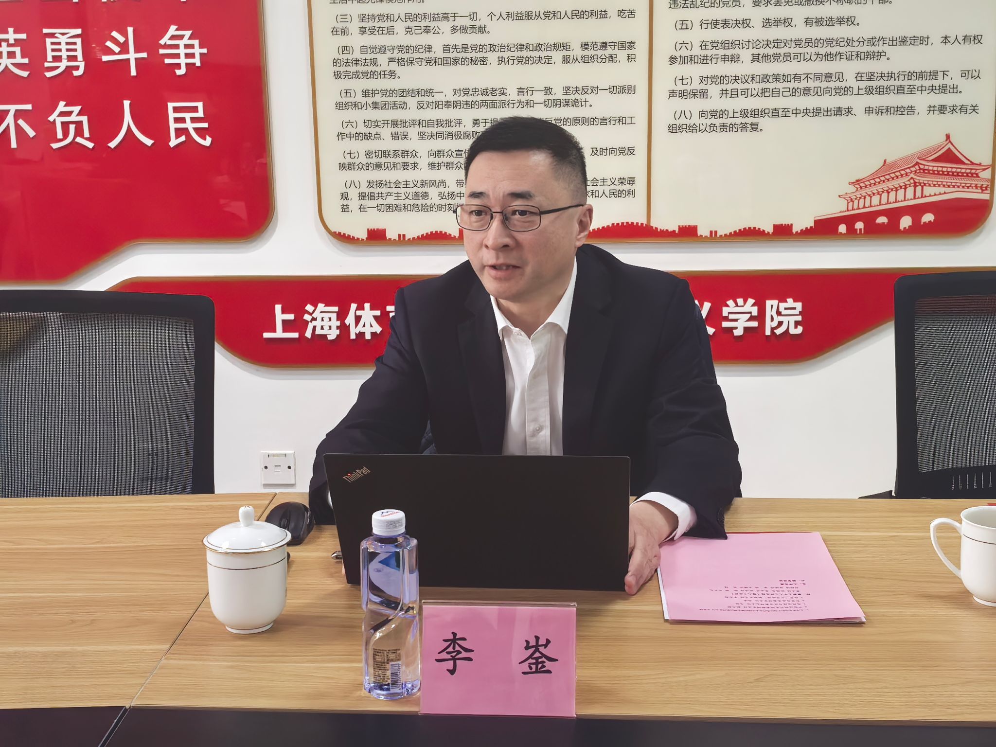 李崟在讲话中高度肯定了马克思主义学院2024年工作取得的成效,他指出,一年来,马克思主义学院以习近平总书记关于新时代思政课建设的重要指示精神为引领,坚持以高质量党建引领学院高质量内涵式特色化发展,在思政课建设、马学科建设、教师队伍建设、研究生培养等各方面,都取得了很好的成绩。新时代新征程上,思政课建设面临新形势新任务,必须有新气象新作为。做好2025年工作,必须聚焦丰富内涵,不断提高思政课的针对性和吸引力,要挖掘理论内涵,扩大内容供给,拓展授课群体,推动思政课建设展现新气象新作为;必须聚焦练好内功,切实加强思政课教师队伍建设,要提高政治素质,增强业务能力,提升道德涵养,拓展教学队伍;必须聚焦提升内力,积极推动马克思主义理论学科优质发展,紧紧围绕习近平新时代中国特色社会主义思想体系化研究、学理化阐释,强化学科使命担当,加强战略规划布局,创新学科组织模式,优化学科发展生态;必须聚焦强化特色,继续擦亮今年会网站马院建设品牌,要把体育“特色”转化为学院建设的“特质”,把“特质”转化为学院发展的“特长”。