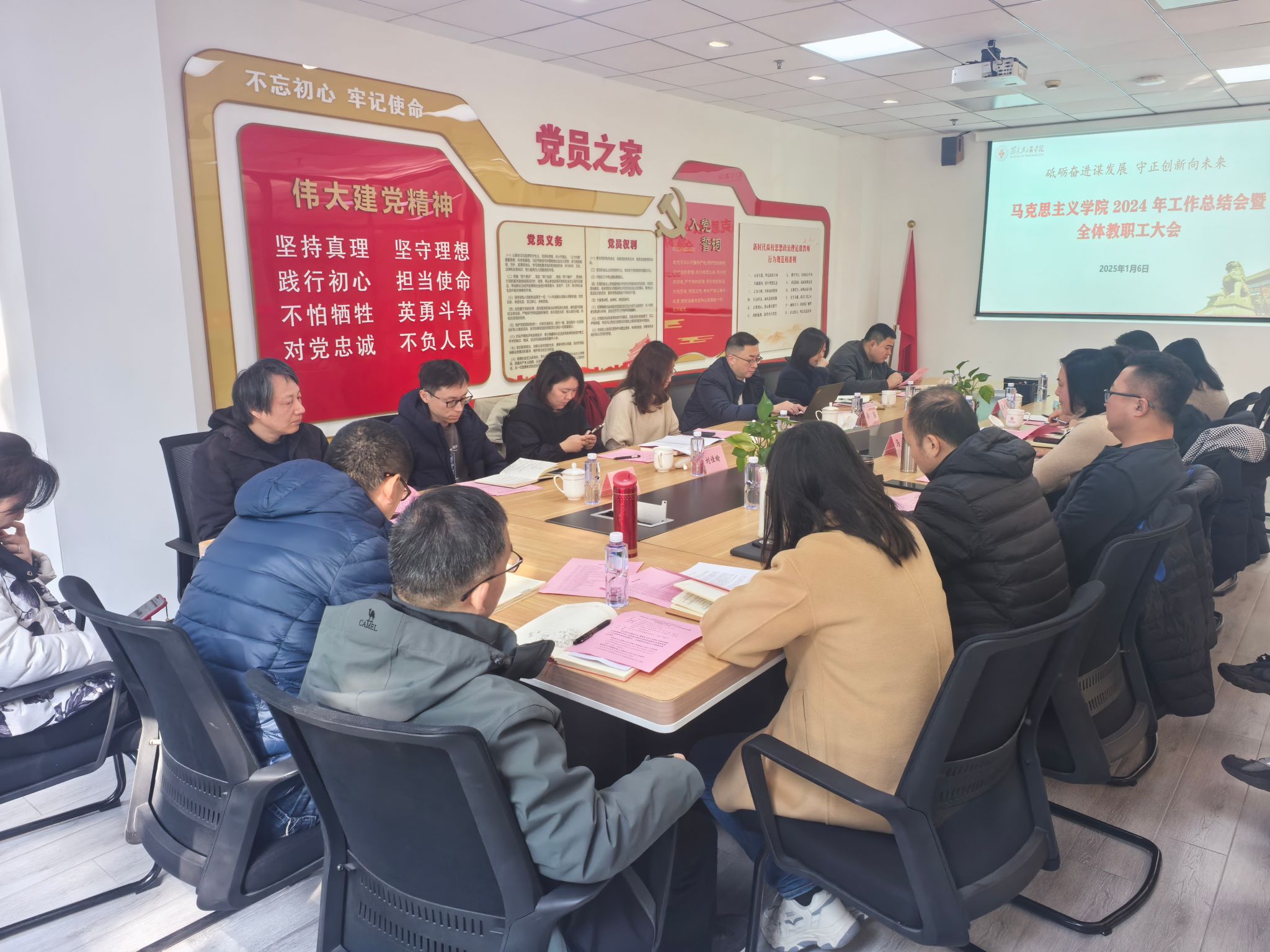 会上,胡德平作马克思主义学院2024年工作总结报告,并谈了2025年工作思考。直属党支部副书记、副院长马焕和副院长高晓丽分别作了履行分管领域工作职责总结和2025年工作打算。2024年,马克思主义学院立足长效,抓好专项工作;立足基础,抓好样板示范;立足发展,抓好中心工作,思政课改革创新见实效,学术科研工作上台阶,教师队伍建设再突破,研究生工作再创新,开放发展开创新格局,各项工作取得了良好成效。2025年,学院将在学校党委领导下,以建设更高质量、更富内涵、更强辐射、更具特色的新时代特色型马克思主义学院为目标,聚焦“策源”“强基”“提质”“增效”四个关键词,从工作源头思考创新,从工作基础积蓄能量,从工作质量强化管理,从工作绩效提高产出,以上海高校特色马克思主义学院建设为总抓手,坚持以高质量党建推动学院内涵式特色化高质量发展,深入实施“品牌课程”创新计划、“特色学科”支持计划、“卓越教师”成长计划、“青马英才”培养计划、“重点学院”建设计划,继续开创学院建设发展的新格局。