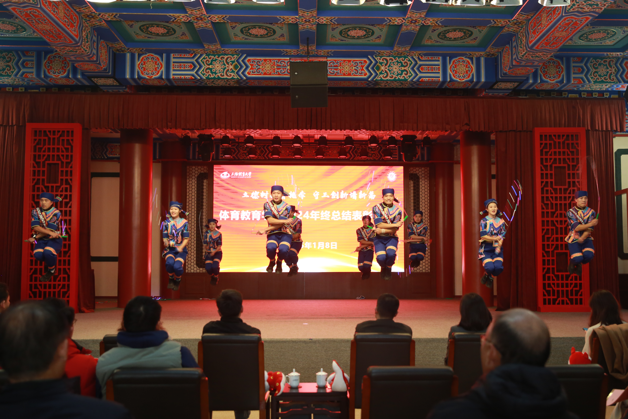 会上,师生共同带来了精彩的节目。空竹表演、花样跳绳、复古舞蹈轮番上演,节目精彩,现场氛围温馨热闹。
