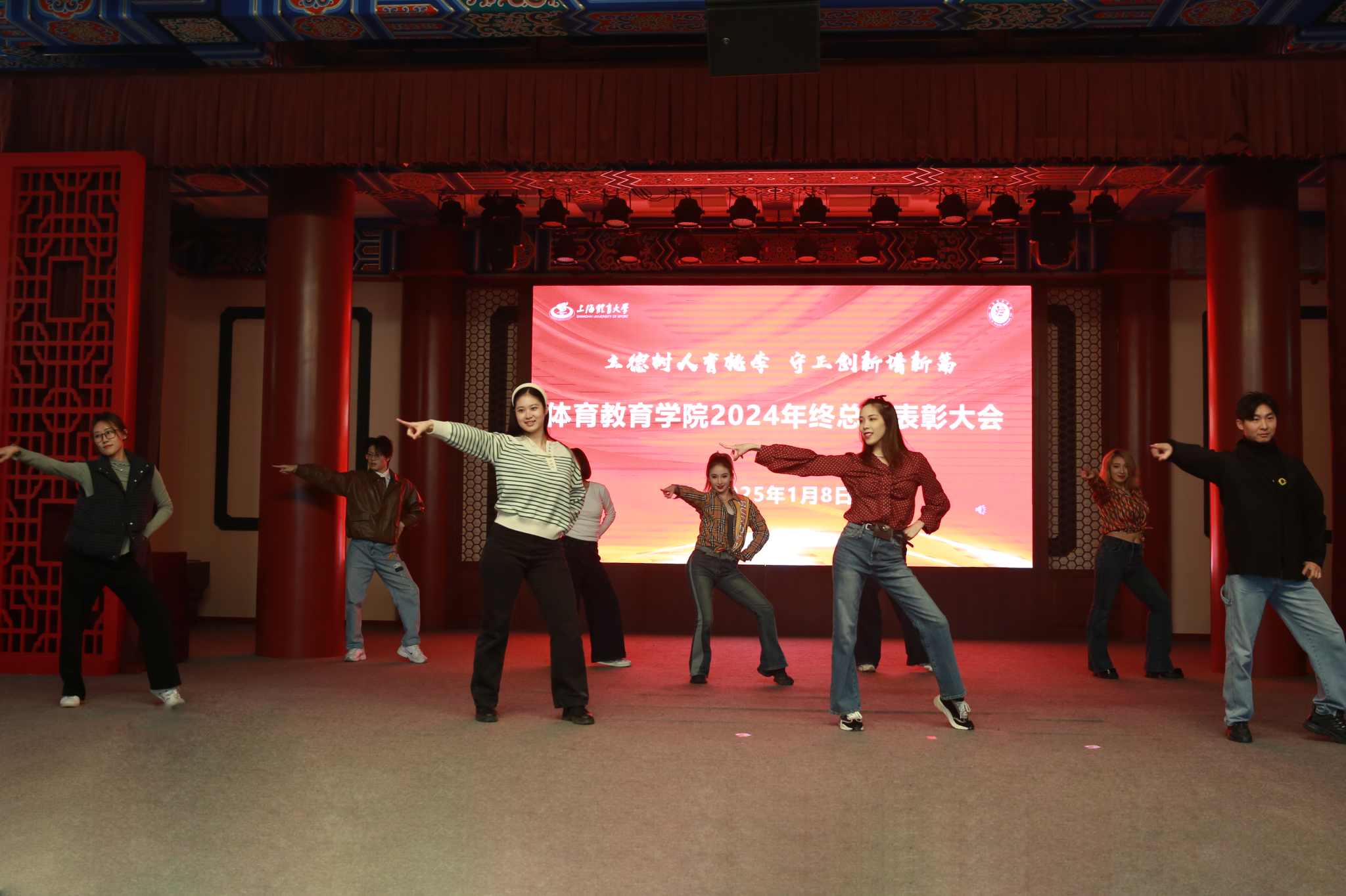 本网讯 立德树人育桃李,守正创新谱新篇。2025年1月8日,体育教育学院2024年度总结表彰大会在绿瓦大礼堂举行。副校长唐炎、相关职能部处负责人、体育教育学院党政班子、全体教师、学生代表参加,大家齐聚一堂共同回顾24年工作,表彰先进典型,擘画未来发展蓝图。大会由体育教育学院党委副书记、副院长曹智超主持。