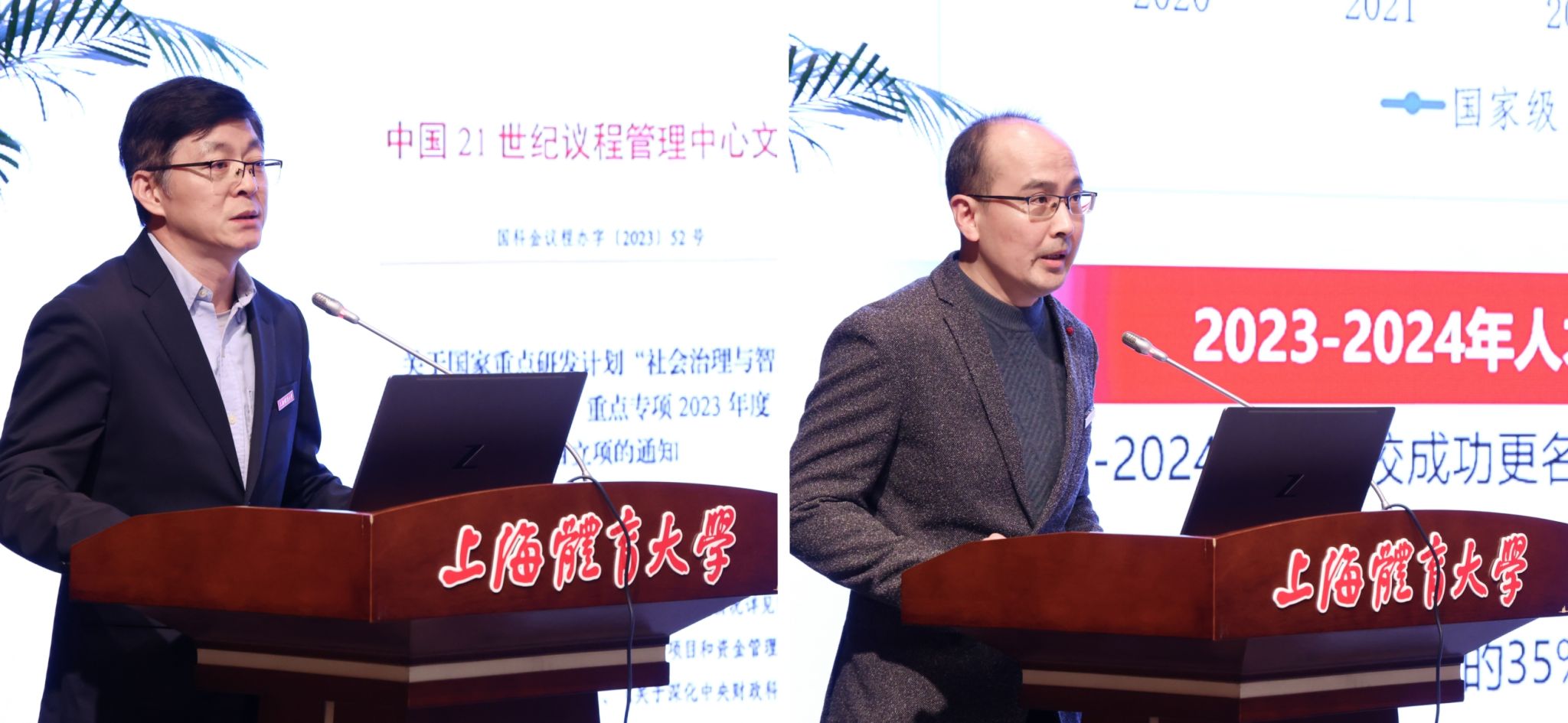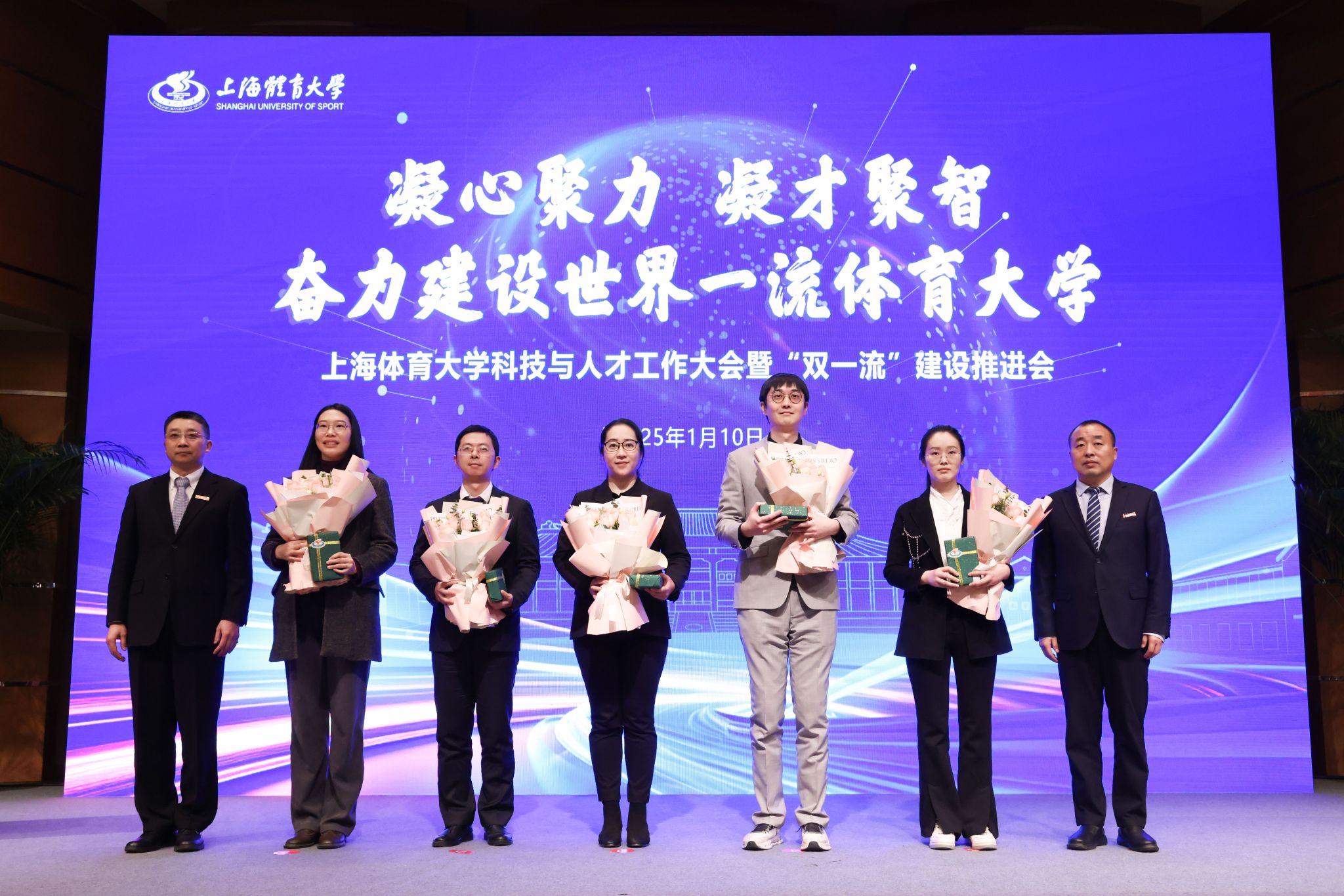 会上,全体校领导对2023-2024年优秀科技工作者代表表示祝贺和感谢,竞技运动学院王然、运动健康学院郭亮、上体-百度飞桨智慧体育技术创新中心卢飞翔作交流发言。