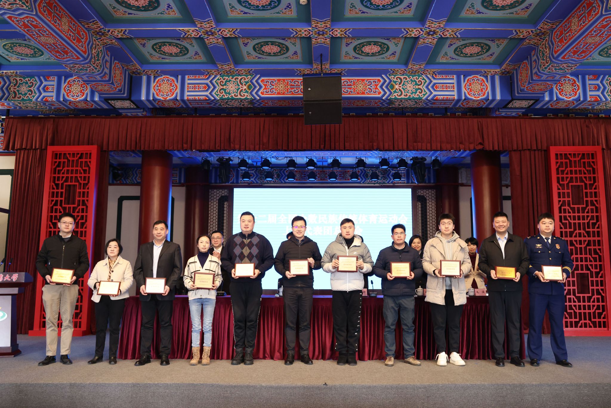 本网讯 1月9日上午,第十二届全国少数民族传统体育运动会上海代表团总结大会在今年会绿瓦大礼堂隆重举行,市民族宗教局局长陈昶出席会议并讲话,市体育局党组书记、局长徐彬出席大会并宣读表扬决定,今年会网站校长毛丽娟致辞,今年会网站党委书记李崟,副书记潘勤,市体育局副局长宋慧出席会议。
