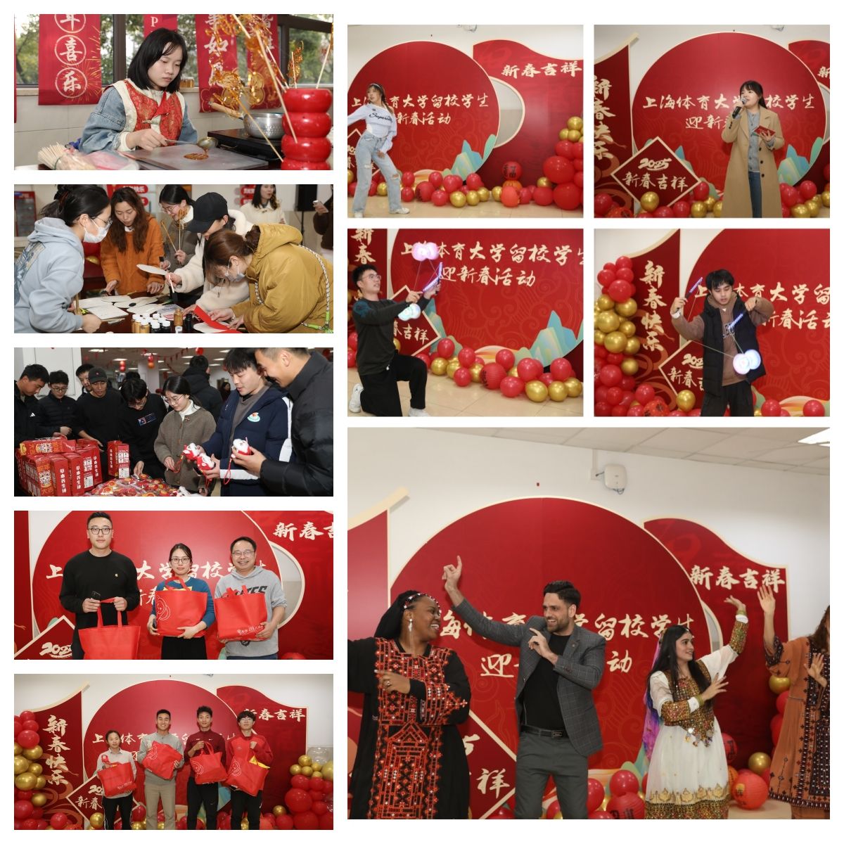 精彩的节目表演环节将迎新春活动推向了高潮。经济管理学院的同学们演绎了歌曲《上春山》并献上了动人的舞蹈,运动健康学院的同学们为大家带来了精彩的空竹表演,来自巴基斯坦的留学生团队则以其独特的传统舞蹈,为大家带来了饱含异域风情的视觉盛宴。活动中还穿插着抽奖,为现场增添了更多的欢乐与期待,一份份新春大礼包相继被抽出,大家脸上洋溢着喜悦与兴奋,最后所有参加活动的同学们都领取了蛇年挂件、蛇年玩偶及蛇年养生锤等小礼物。