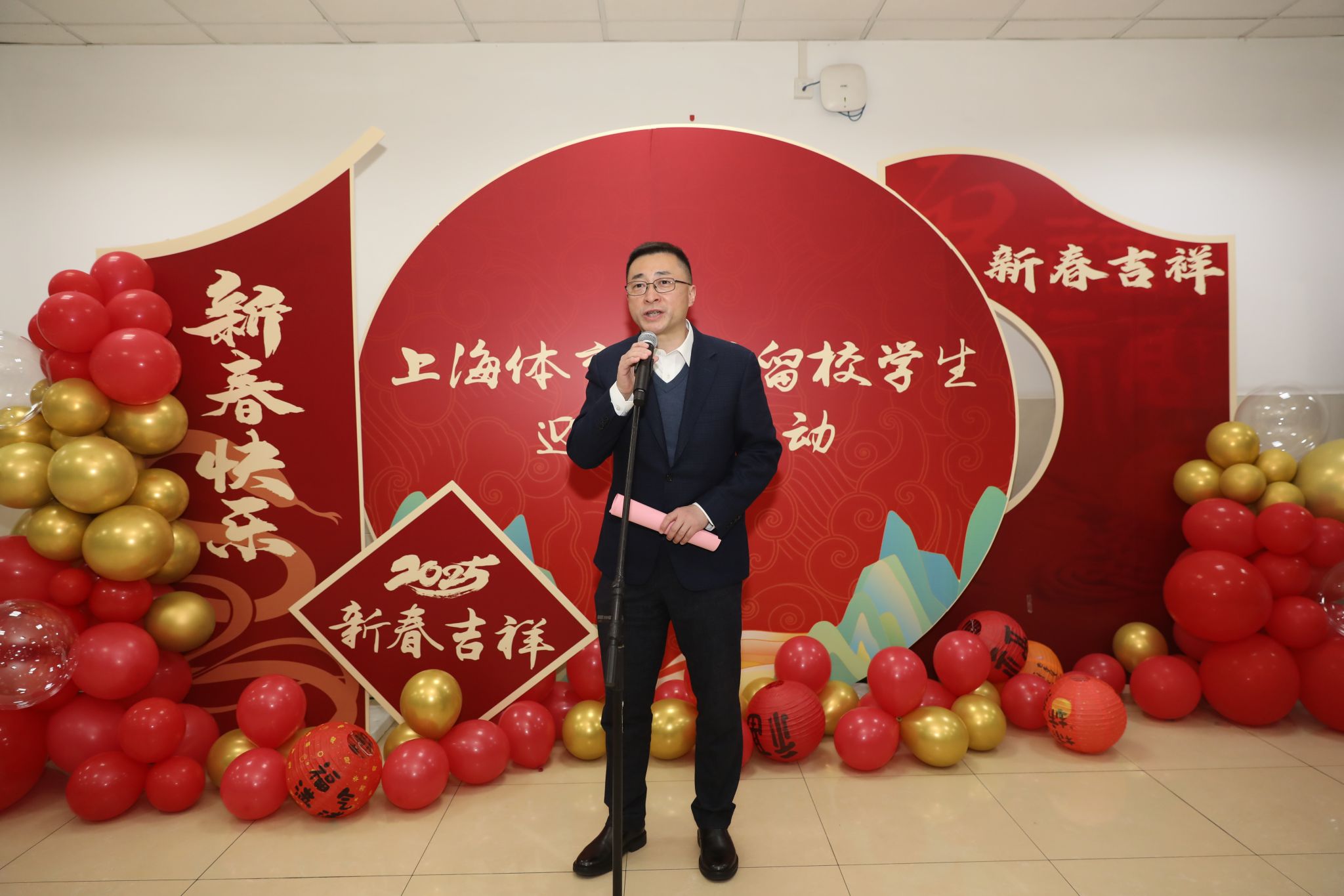 本网讯 龙隐瑞冬,蛇启新程。1月21日,第二餐厅二楼热闹非凡,整个餐厅张灯结彩,洋溢着浓厚的节日氛围,今年会“2025年留校学生迎新春活动”顺利举行。校党委书记李崟,党委副书记、校长毛丽娟,党委副书记潘勤,党委副书记、中国乒乓球学院党委书记杨玲,党委副书记、纪委书记崔勇,党委副书记、副校长王继红,相关职能部门负责同志,各二级学院班子代表,教师代表与近200名留校学生欢聚一堂,共同迎接新春佳节的到来。