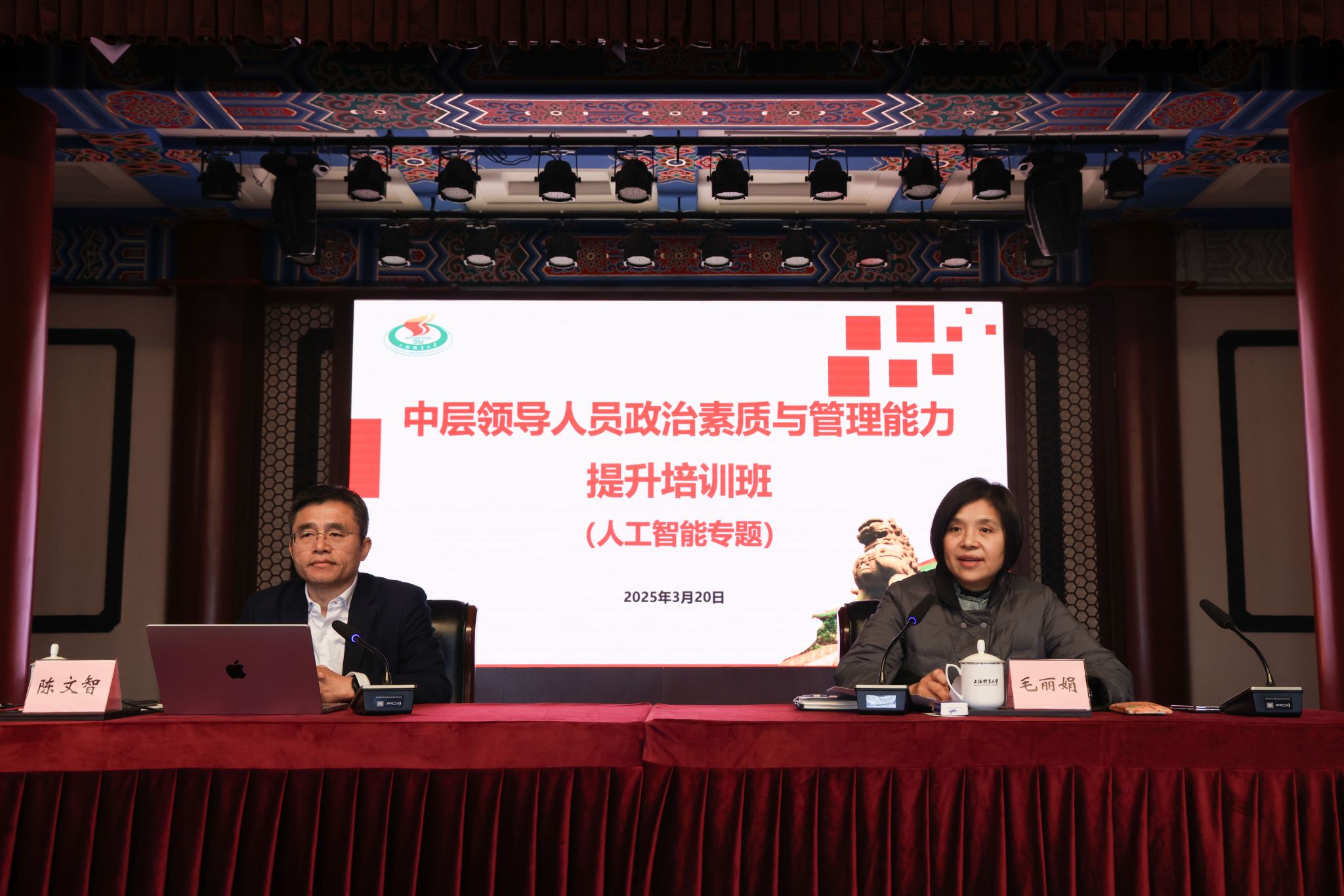 本网讯 3月20日上午,学校党委在绿瓦大礼堂举办中层领导人员政治素质与管理能力提升培训(人工智能专题)讲座,此次讲座邀请到了教育部教育管理信息化专家组副组长、浙江省高校本科信息化教指委主任、浙江省高教学会教育技术专委会主任、浙江省计算机学会教育信息化专委会主任、浙江大学信息技术中心主任陈文智教授作专题辅导报告。党委副书记、校长毛丽娟主持专题报告,校领导及中层领导人员参与了培训。