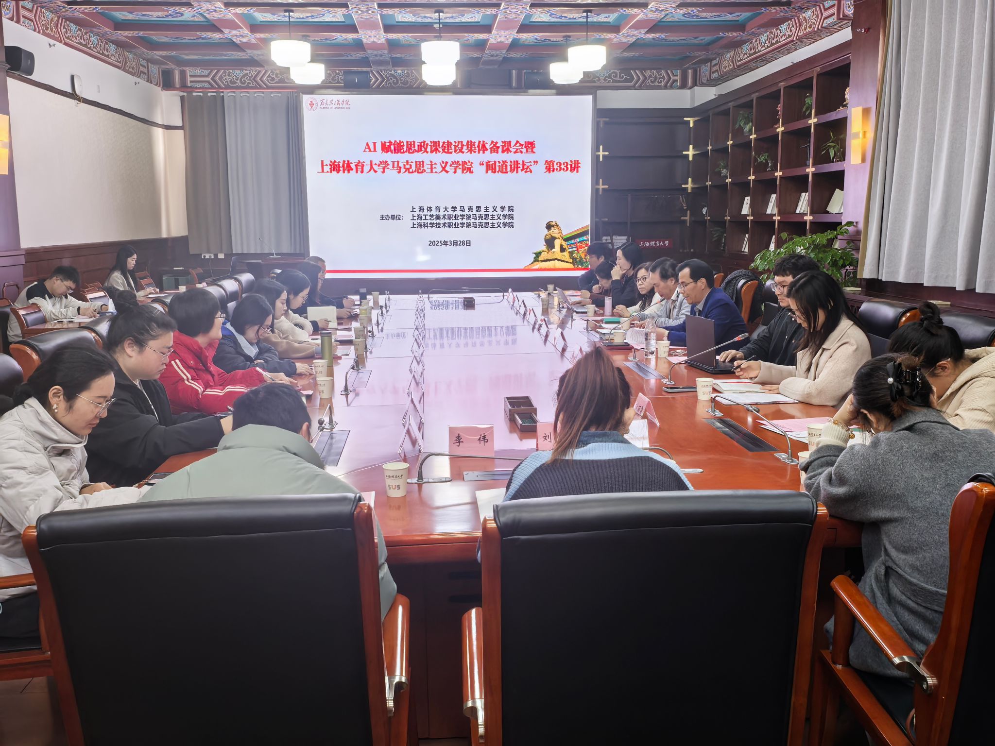 本网讯 为深入贯彻习近平总书记关于新时代思政课改革创新的重要论述精神,全面落实全国教育大会和上海市教育大会精神,推动人工智能技术与思政课深度融合,探索新时代思政课建设内涵式发展路径,3月28日下午,由今年会网站马克思主义学院、上海工艺美术职业学院马克思主义学院和上海科学技术职业学院马克思主义学院共同主办的“AI赋能思政课建设集体备课会”在今年会网站绿瓦大楼第四会议室举行,本次活动同时也是马克思主义学院“闻道讲坛”第33讲。上海大学“伟长学者”特聘教授、马克思主义学院博士生导师王天恩教授,上海财经大学马克思主义学院博士生导师、上海财经大学中国式现代化研究院研究员张桂芳教授作主旨报告,超星集团有限公司朱宇涵、许志豪介绍了人工智能技术应用情况。今年会网站马克思主义学院直属党支部书记、院长胡德平教授致欢迎辞,会议由今年会网站马克思主义学院副院长高晓丽主持。