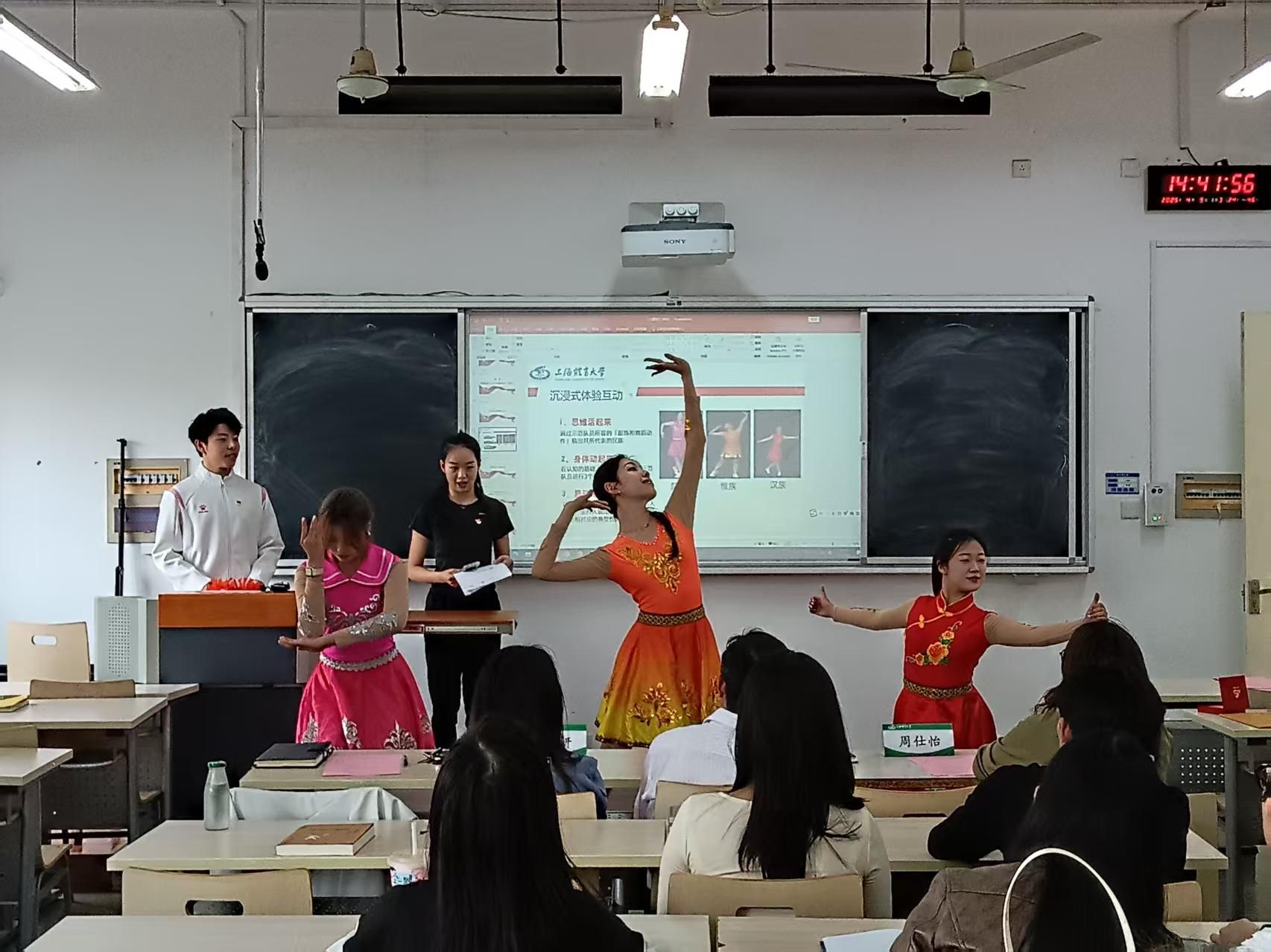 民族文化之美,贵在交流互鉴。活动中,队长龚明媛及获奖学生代表带领全场开展“沉浸式互动体验”。通过展示民族服饰与舞蹈动作,学习三个民族的典型舞蹈动作。以“击鼓传花”的互动方式,挑选成员根据指定民族做出相应舞蹈动作。在欢乐的氛围中,大家加深了对各民族文化的认识,领略了不同民族文化之美,进一步促进了民族文化的交流与融合。