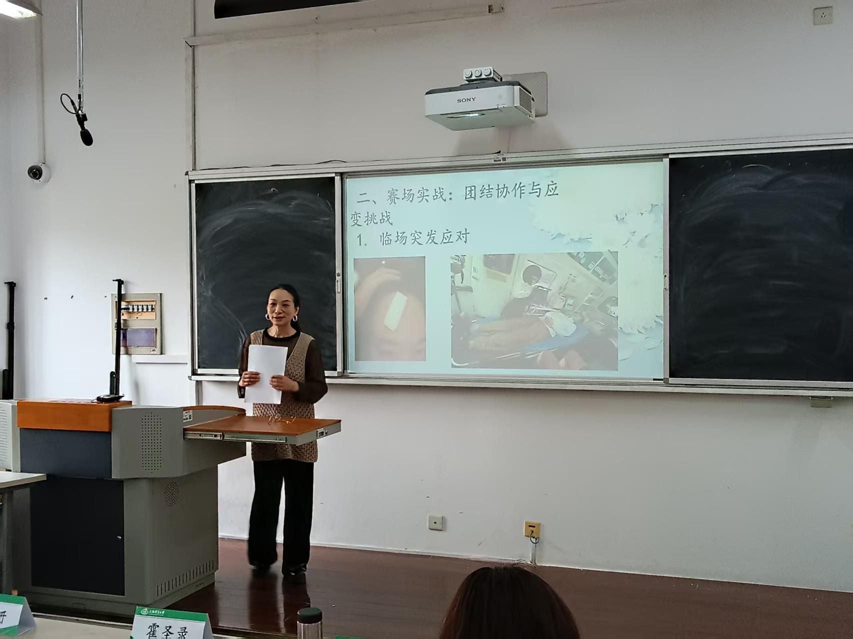艺术学院舞蹈编导专业副教授、赛事教练周仕怡老师分享了赛事的育人价值。作为《茅古斯·狩》的教练,在前期备赛创编作品时,她将文化传承与创新理念相融合,致力于展现民族文化的独特魅力;赛场实战中,注重培养队员的团队协作精神和应对突发挑战的能力;赛后反思总结,进一步增强青年人的文化自信,展现了以体育赛事践行“立德树人”使命的担当。