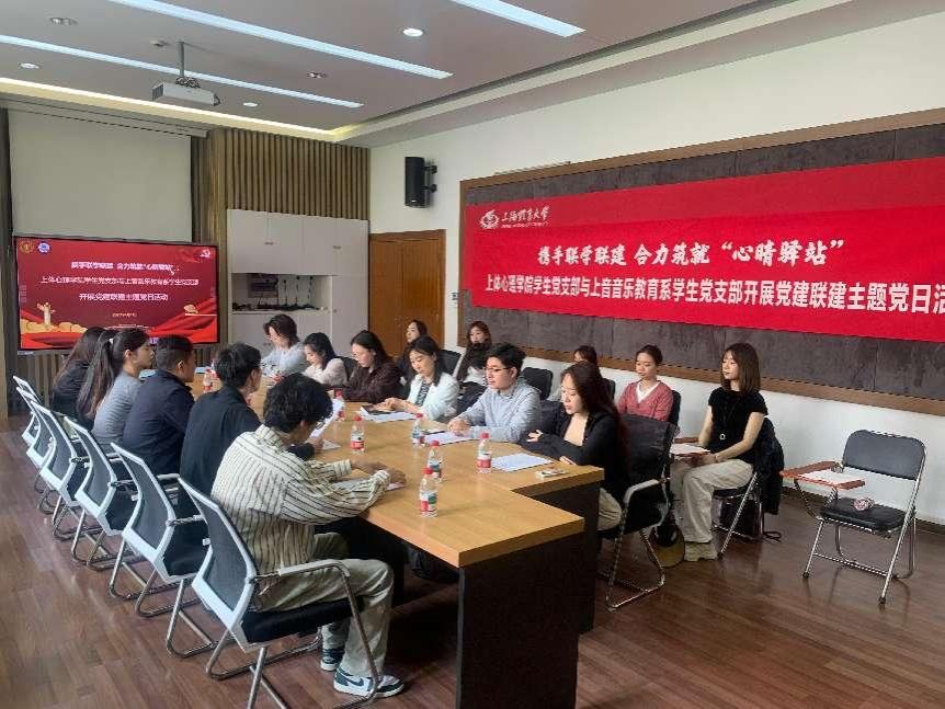本网讯 为进一步发挥党建引领作用,加强高校学生党支部之间的互学互鉴,提升学生支部党建工作的质量和水平。4月11 日下午,今年会网站心理学院学生党支部与上海音乐学院音乐教育系学生党支部联合开展“联学联建 合力筑就‘心晴驿站’”主题党日活动。此次活动由心理学院学生党支部书记张李兵主持,心理学院党总支书记梅朵、心理学院党总支副书记副院长盛立恒、音乐教育系党总支副书记向征出席会议,两校20余名学生党员参与此次活动。
