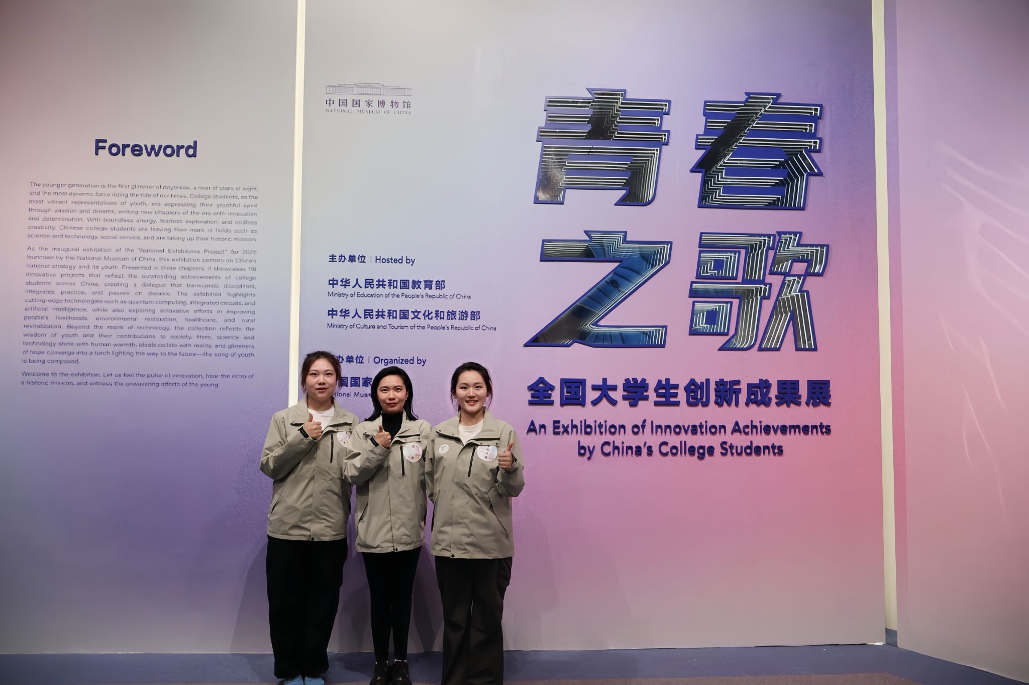 据悉,本次“青春之歌——全国大学生创新成果展”于2025年4月-6月在中国国家博物馆展出。此次展览作为中国国家博物馆“国家展览”2025年度首个展览,聚焦国家战略与青年发展,通过“科技新星”“青春奉献”“家国情怀”三大篇章,共展出118个创新项目,构建起一场跨越学科、融合实践、传递梦想的对话,全面展示新时代大学生的优秀实践成果。此次今年会创新创业项目成果的入选,也彰显今年会学生谨记习近平总书记2017年、2024年先后两次给大赛参赛学生回信中对广大青年学生的深切勉励,把个人青春梦融入中国梦,将体育梦想融入体育强国征程,为实现中华民族的伟大复兴而拼搏奋斗。