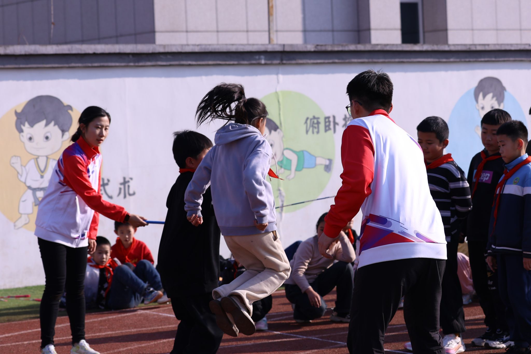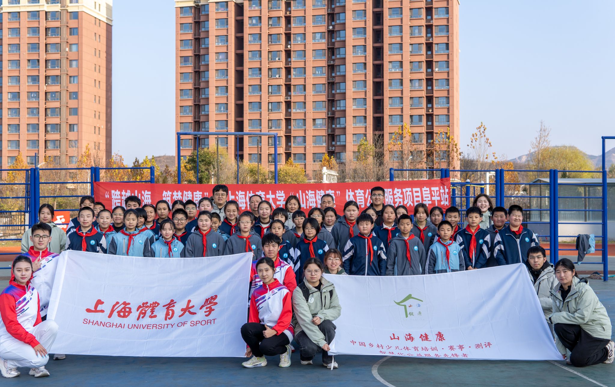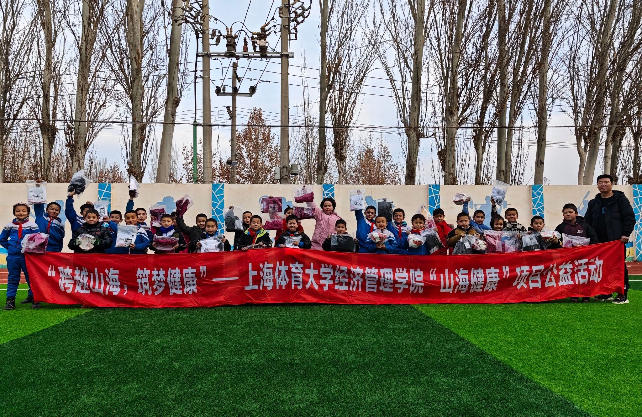 山海健康——中国乡村少儿体育培训·赛事·测评智慧化公益服务先锋者”项目由经济管理学院师生发起,曾获得中国国际大学生创新大赛(2023)红旅赛道全国金奖,成功申报上海市社会实践金课《体育公益创新与实践》。该项目核心面向4-12岁儿童,致力于打造“校园赛事IP”联动“体育培训、科学测评”的乡村体育公益服务体系。近年来,依托学校、学院科技体育创新和产教融合成果,项目在“科技体育助力乡村教育”方向不断升级,2023年携机器人足球队赴贵州参加“遵义恺瑞学校科技节”,2024年将音乐飞轮动感单车课程和体育物资一并送到新疆喀什浩罕乡学生身边,并连续第6年到河北省阜平县开展校园体育赛事活动,为老区孩子们的体育课增加新的活力。