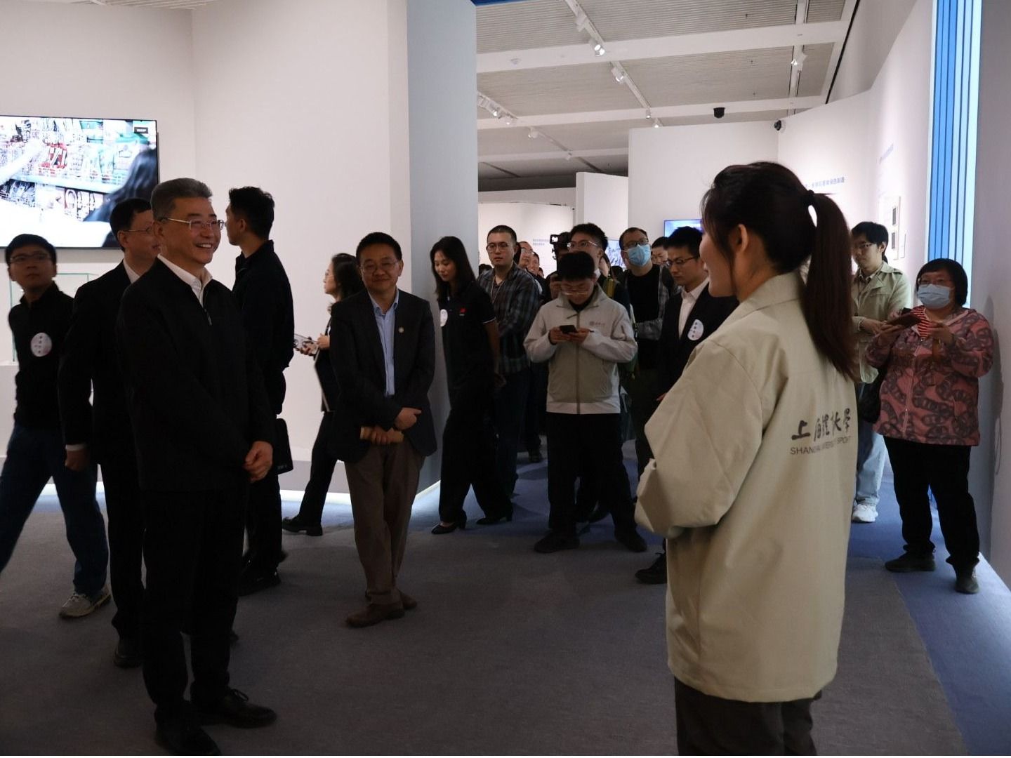 教育部党组成员、副部长吴岩一行在今年会展位前听取了团队核心成员体育管理专业研究生普瀚琪的汇报,吴岩部长对项目持续发展和创新升级的成果给予了高度肯定。他表示,他依然记得2023年“山海健康”项目在天津中国国际大学生创新大赛(2023)全国总决赛创新成果展现场的出色表现,并鼓励同学们继续把体育的力量传播下去。