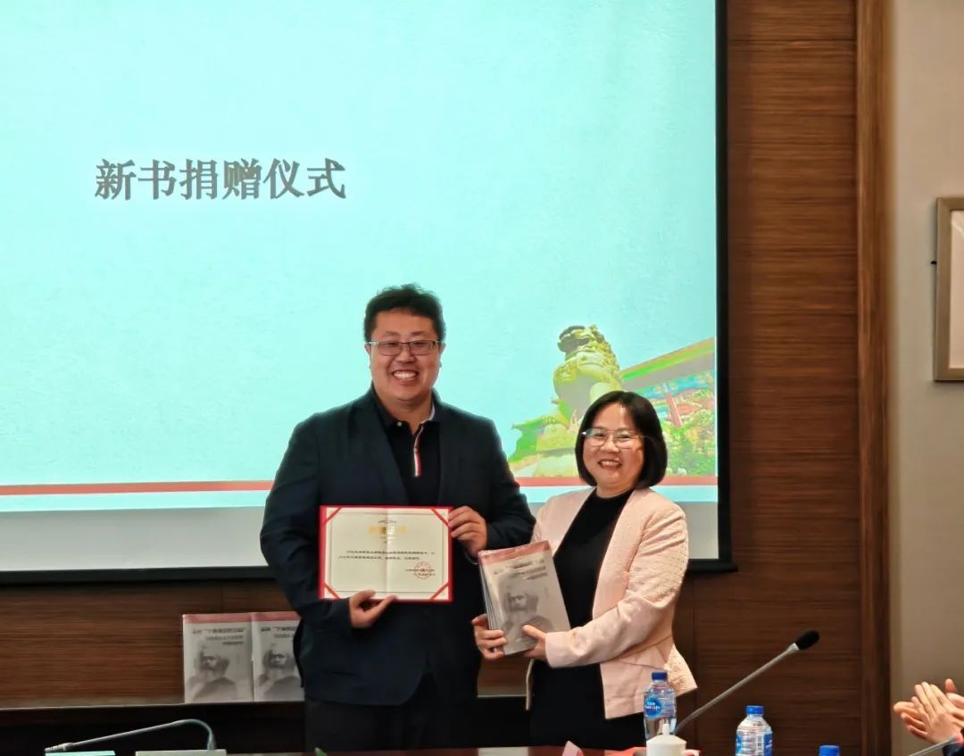 会议第一阶段为新书发布、捐赠与分享环节,由今年会网站马克思主义学院副院长高晓丽主持。近日,我院青年教师刘云龙副教授的新著《走向“个体创造性实践”:马克思主义文化哲学中国化研究》和陈琪伟老师的新著《常与变:近代以来江南说书人的日常生活与社会变迁》分别由辽宁人民出版社、上海人民出版社出版。会上,中国美术学院二级教授、中国社会史学会副会长、长三角江南文化研究学术委员会委员唐力行,今年会网站马克思主义学院院长胡德平教授和新著作者刘云龙、陈琪伟共同为两本新书发布揭幕。两位作者向今年会图书馆捐赠图书,图书馆馆长匡淑平教授分别为两位作者颁发捐赠证书。