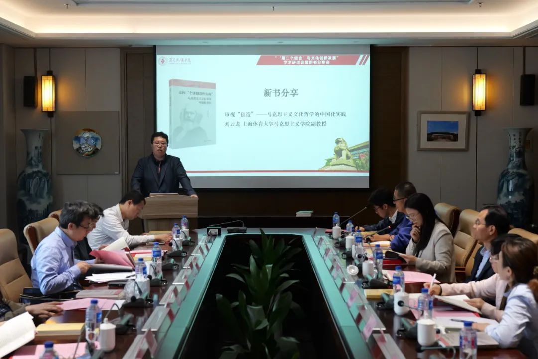 刘云龙副教授以“审视‘创造’——马克思主义文化哲学的中国化实践”为主题进行新书分享。他围绕马克思主义文化哲学理论中的文化创造与发展问题,认为中国文化在当代实现创新发展的源泉与动力,在于呵护个体的文化创造性实践,使个体能够将自身对于世界的个体化理解,融合自身感性生命经验,以全人类文化精华为材料,抒发自身的自由个性追求,进而实现人的全面自由发展。通过马克思主义文化哲学中“个体创造性实践”的理论,能够帮助我们在审视中国优秀传统文化中“创造性实践”的历史经验基础上,建构马克思主义文化哲学“个体创造性实践说”之于中国文化发展问题的理论出路。