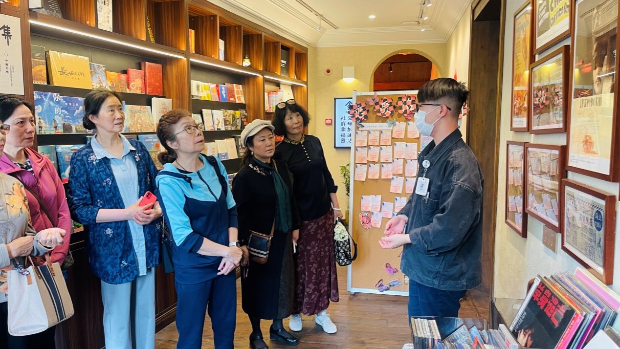 当日下午,书社会员首先参观了鲁迅与内山纪念书局。作为鲁迅与中外文化友人交流的重要场所,书店保留了原内山书店的原貌,又经过精心设计和修缮改造,扩建为三层楼高的文化殿堂,全方位陈列和展示鲁迅的相关作品,生动还原了上世纪二三十年代的文化氛围,给读者以沉浸式的阅读体验。会员们驻足于书架前,聆听有关书局的前世今生,感受这位现代文学巨匠与书店主人内山完造的深厚情谊。