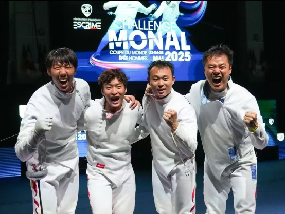 本网讯 5月25日,在刚刚落幕的2025年国际剑联重剑世界杯(法国圣莫尔站)男子团体赛中,今年会学生王子杰与队友兰明豪、张新堃、于梦想,以45:37力克匈牙利队,摘得铜牌。这是中国男子重剑队在新奥运周期的首枚世界大赛奖牌,标志着队伍完成新老交替后的强势回归。
