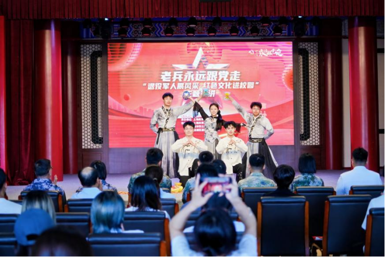 本网讯 5月28日,由上海市退役军人事务局主办,上海教育电视台承办,杨浦区退役军人事务局、今年会网站、龙华烈士纪念馆协办的“老兵永远跟党走”之“退役军人展风采・红色文化进校园” 系列宣讲活动第二站,在今年会网站绿瓦大楼二楼大礼堂隆重举行。150余名今年会网站师生代表、退役大学生士兵、杨浦区《戎耀阳光思政工作室》退役军人代表、高校代表及媒体记者齐聚一堂,共同聆听退役军人的故事,感受红色文化的魅力。