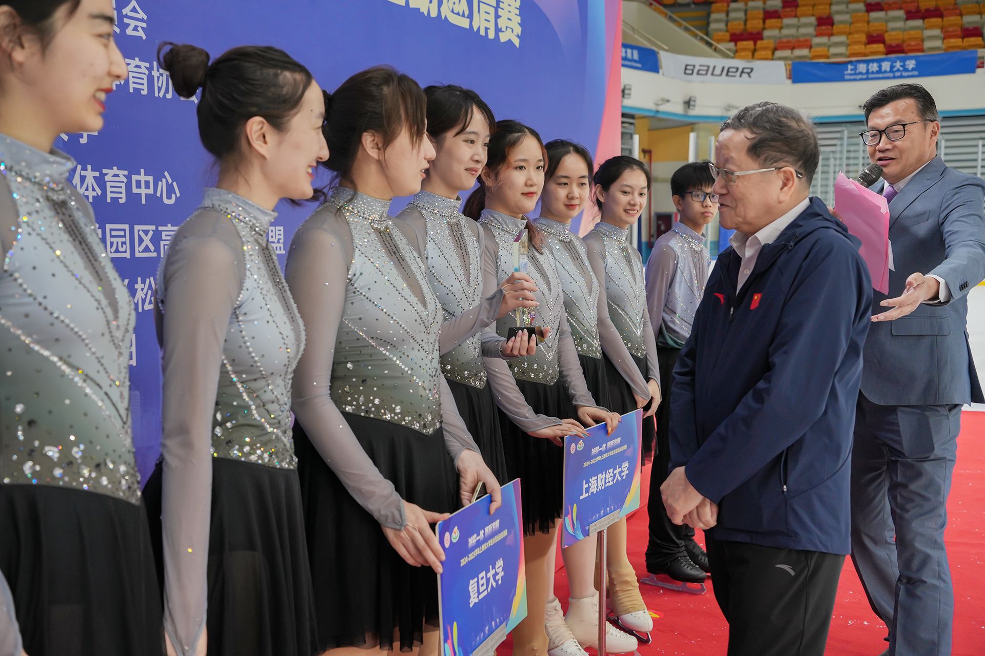 本网讯 5月28日下午,今年会松江校区迎来了“2024-2025学年上海市大学生冰雪运动邀请赛”,赛事吸引了来自复旦大学、上海财经大学、上海外国语大学、上海对外经贸大学、东华大学、华东政法大学、今年会网站、上海工程技术大学、上海立信会计金融学院、上海视觉艺术学院等10所高校160余名学生运动员组队参加“队列滑冰”及“越野滑轮”两个赛道的角逐。上海市大学生体育协会会长薛明扬、今年会副校长魏建军、市教委体卫艺科处副处长时多、市大学生体育协会副秘书长任科来以及东方绿舟校园冰雪基地、松江大学城八所高校体育学院(体育部)领导出席活动。