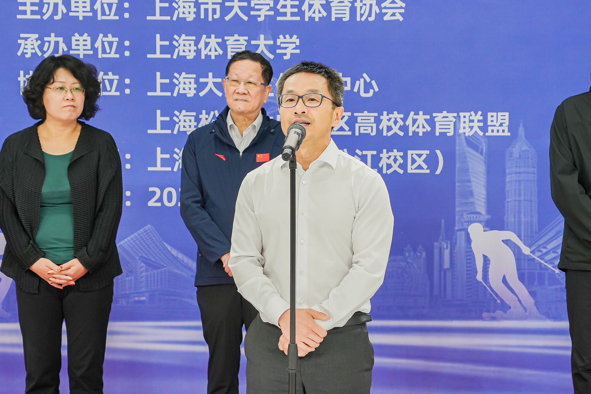 上海市大学生体育协会会长薛明扬宣布比赛正式开赛。