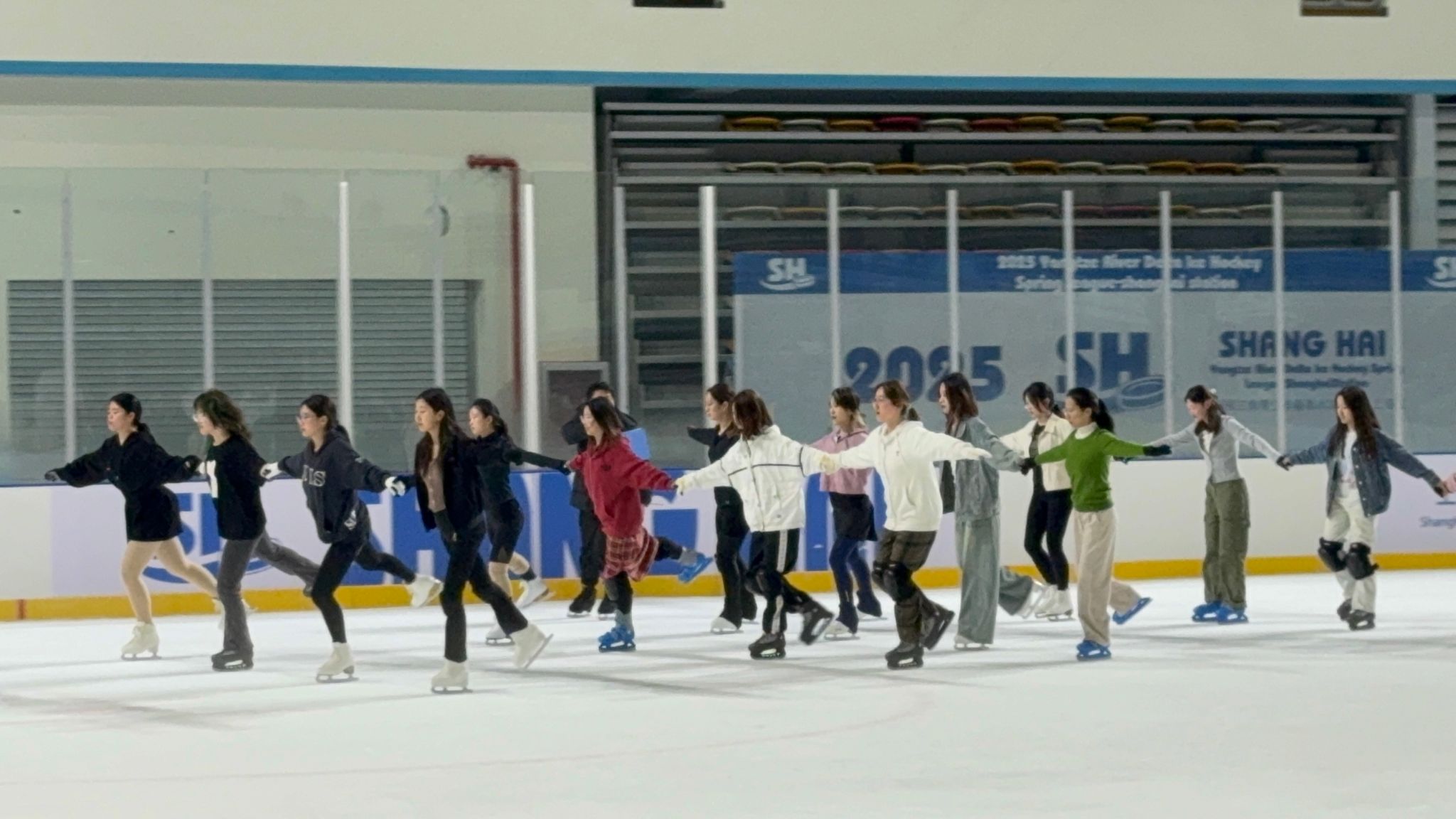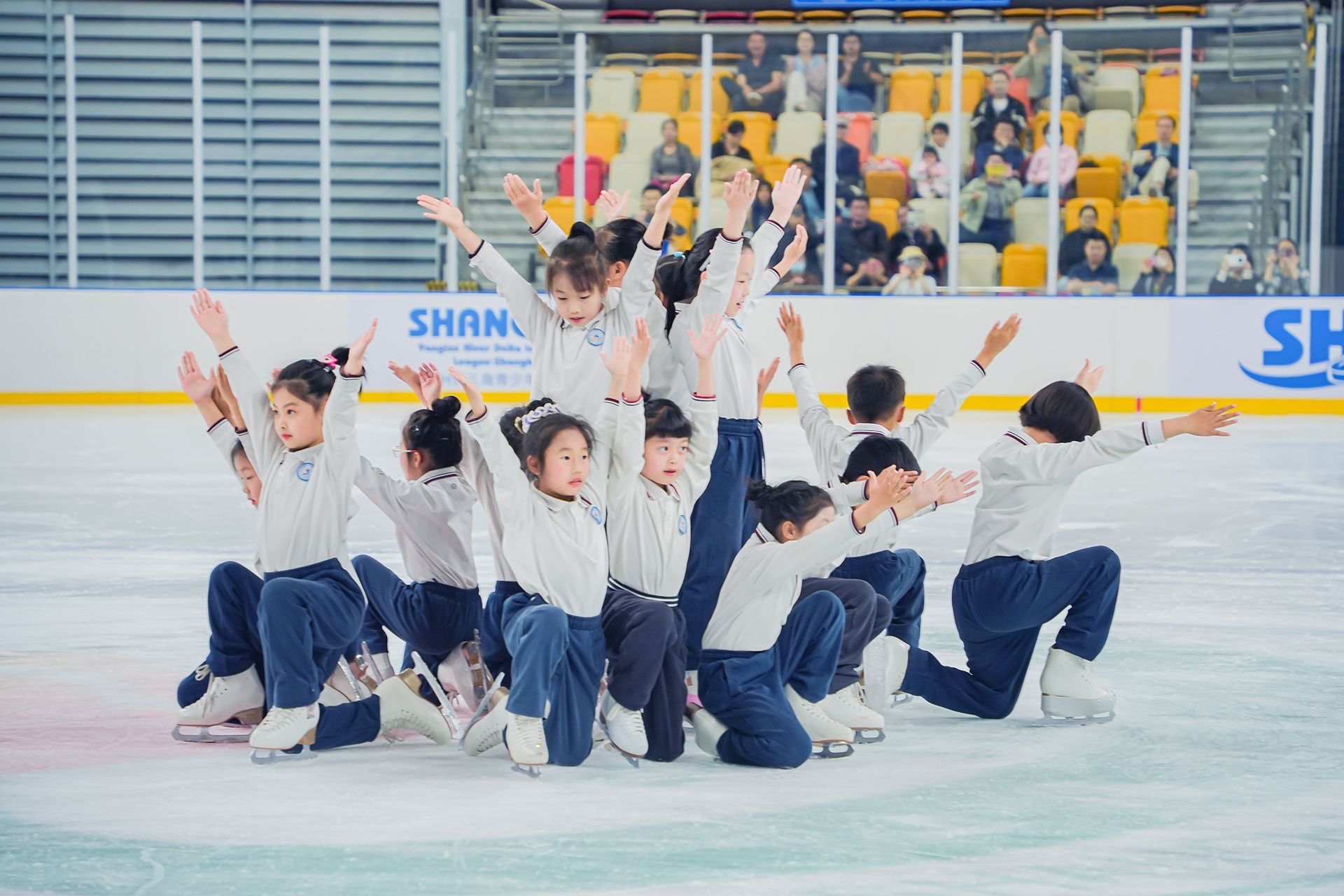 活动首先由上海市松江区外国语实验学校的花样滑冰队呈现了精彩的队列滑展示表演,为活动启幕增添亮色。