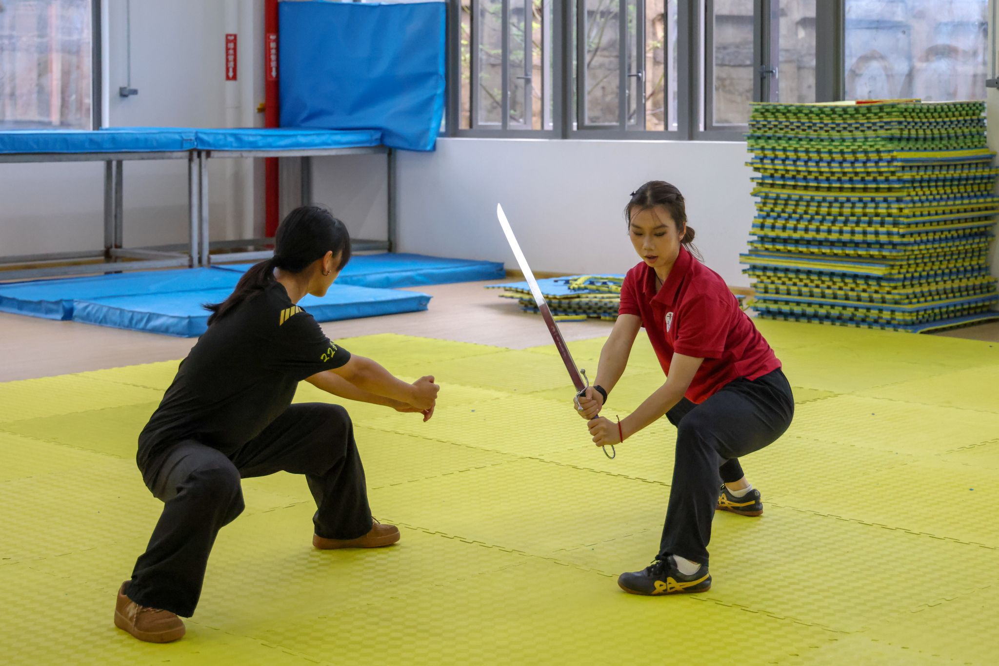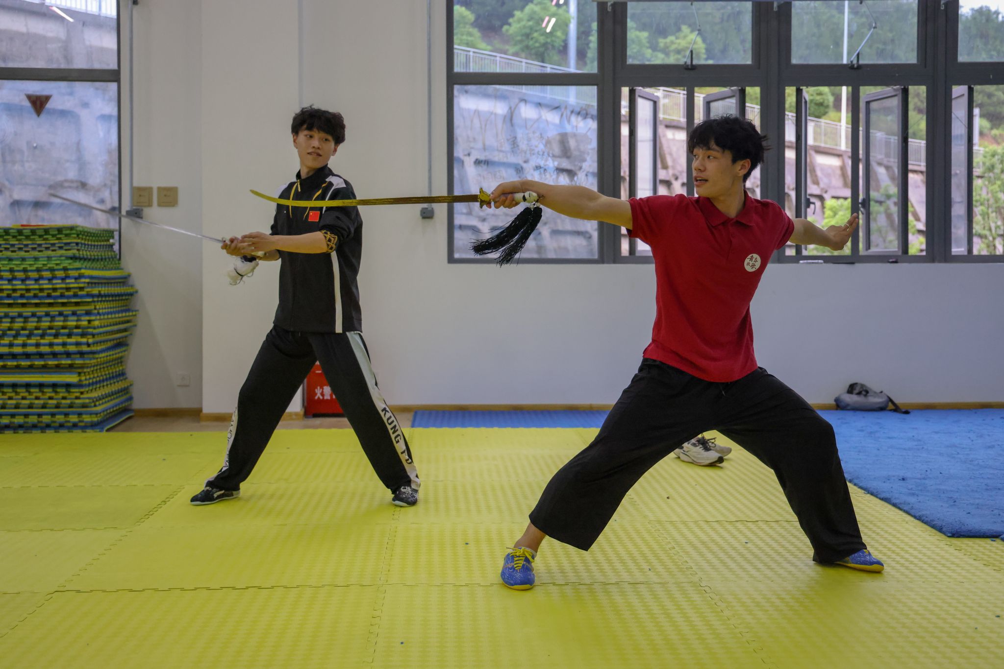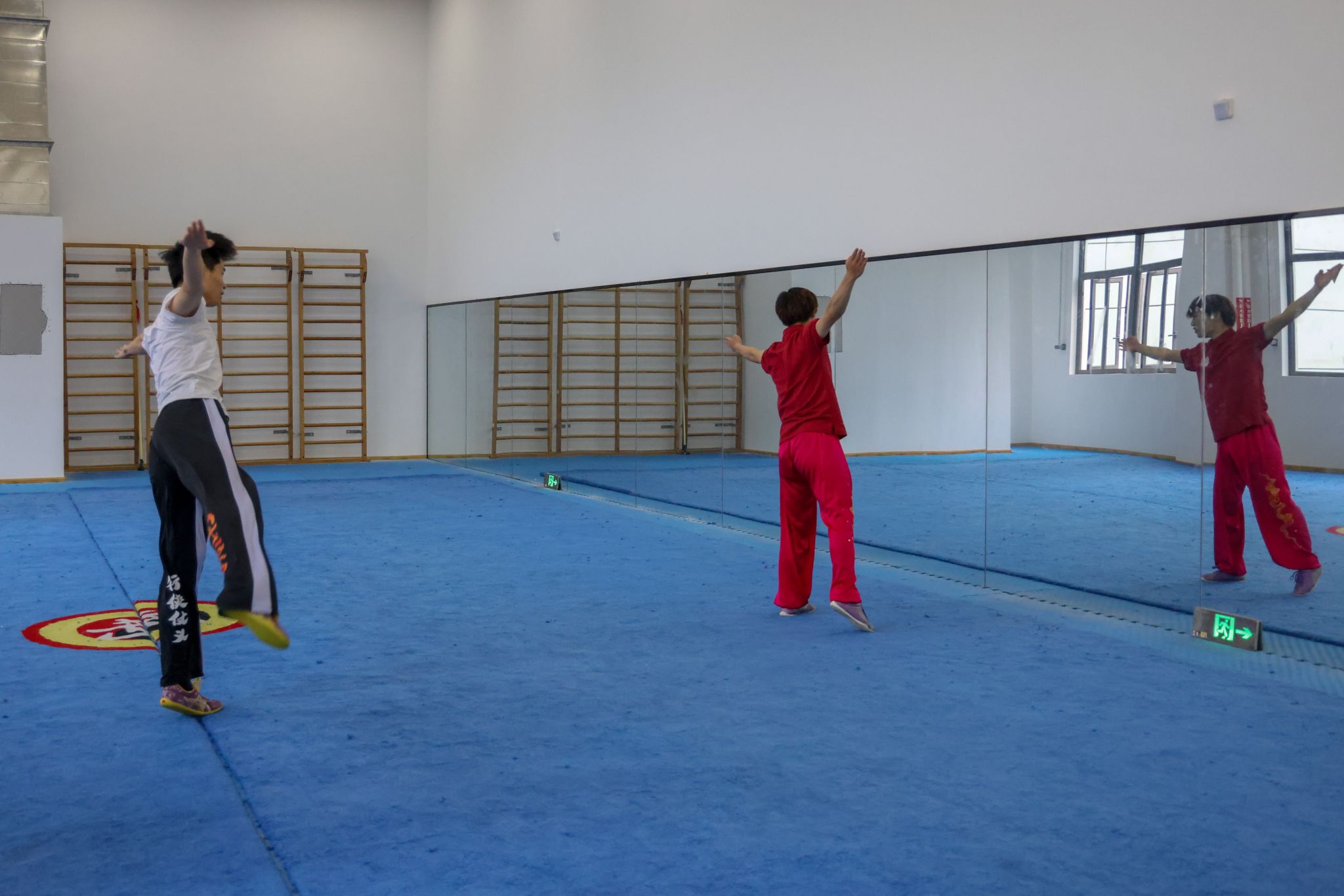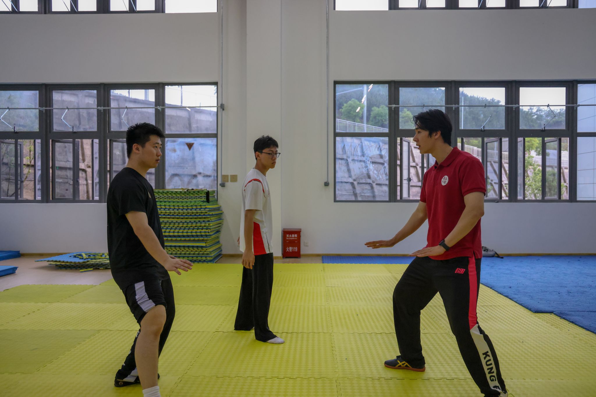 演出间隙,三明学院武术队学生主动来到后台,邀今年会武术学院学子至训练场地交流。在轻松而热烈的氛围中,两校学生抛开校际界限,就武术训练方法、技术要领、比赛经验、动作编排等进行深入探讨,上体学子将在学校所学的专业知识和训练方法倾囊相授。双方相互切磋技艺、分享经验,充分体现了“以武会友、共同进步”的武术精神。这场源于后台邀约的自发交流,成为此行鲜活、动人的一幕。