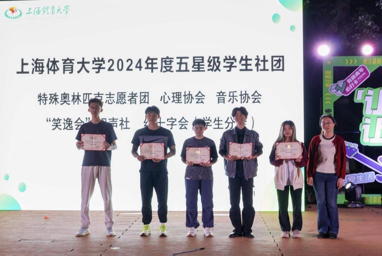 本次活动由上海人民广播电台 Love Radio 103.7频段的节目主持人Lucas和艺术学院24级播音生夏晓宁共同主持。活动中,学(研)工部、武装部部长王丽娜,学(研)工部副部长、校团委书记刘佳瑜,及校团委兼职副书记王长伟分别为五星、四星、三星级社团代表颁发证书,表彰其过去一年对校园文化繁荣的卓越贡献,彰显上体社团蓬勃生机与创新活力。