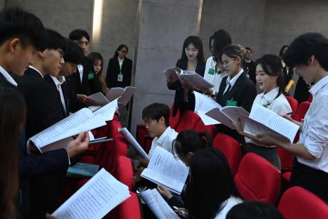 复旦大学学生会主席团成员施懿与同济大学研究生会执行主席杨亦宁作为兄弟院校代表发表致辞。他们表示兄弟院校学生会将一如既往与上体学生会紧密合作,共同探索组织发展新规律、新模式,努力打造根植同学、清新阳光的学生会形象,提升同学满意度、大局贡献度和社会认可度,携手为两校青年学子成长成才贡献力量。