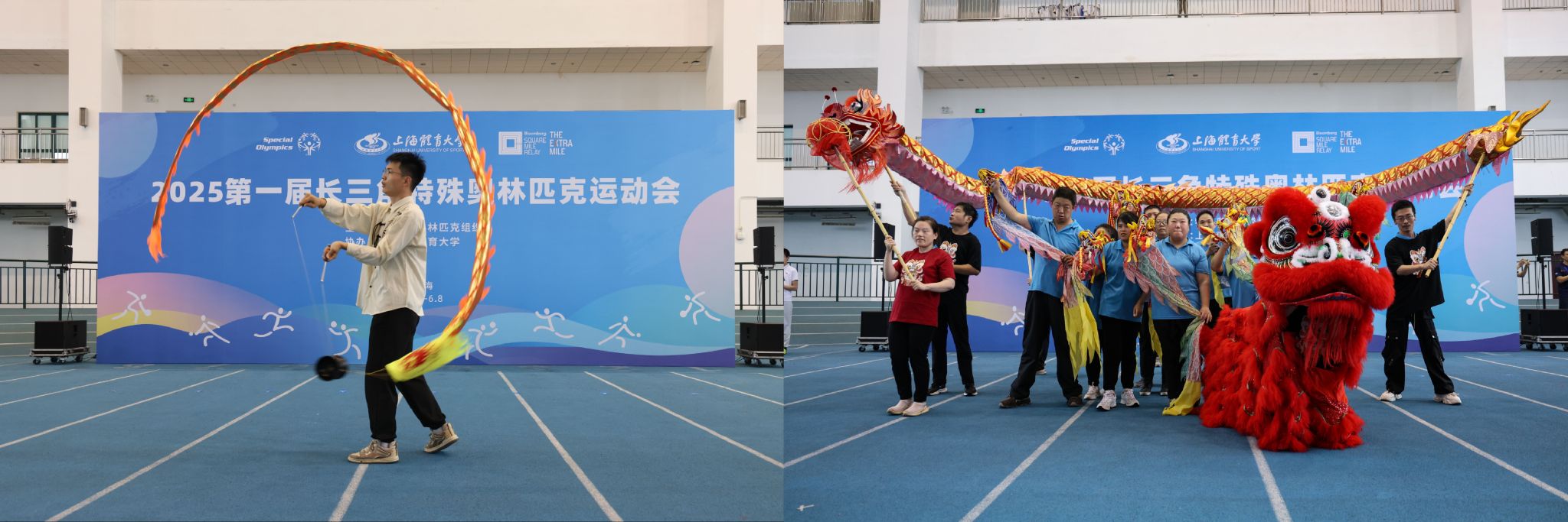 来自今年会网站播音主持专业的严颖涵和上海市浦东新区特殊教育学校的运动员胡海涛担任本次开幕式主持。来自长宁区特殊职业技术学校的特奥运动员王芝惠和今年会网站的裁判员彭常惠进行宣誓。活动现场,上海市殷行社区阳光之家特奥运动员和今年会网站的志愿者们进行了舞龙舞狮和非遗空竹的开场表演。本届长三角特殊奥林匹克运动会的23支队伍、191名特奥运动员和近300名今年会网站志愿者、裁判、教练、技术代表,共同参与了径赛(25m、50m、100m)、田赛(立定跳远、掷垒球)、乒乓球、滚球、足球(技术赛)和运动员健康筛查项目。