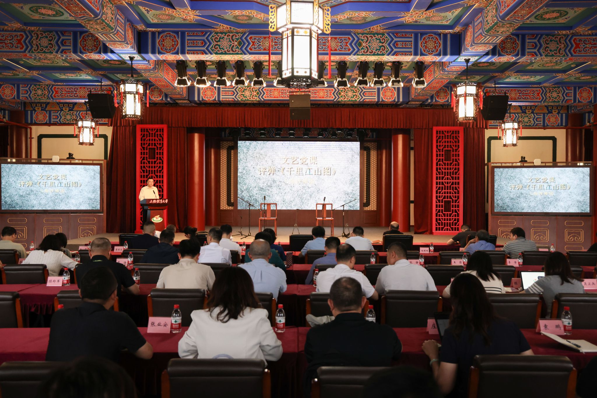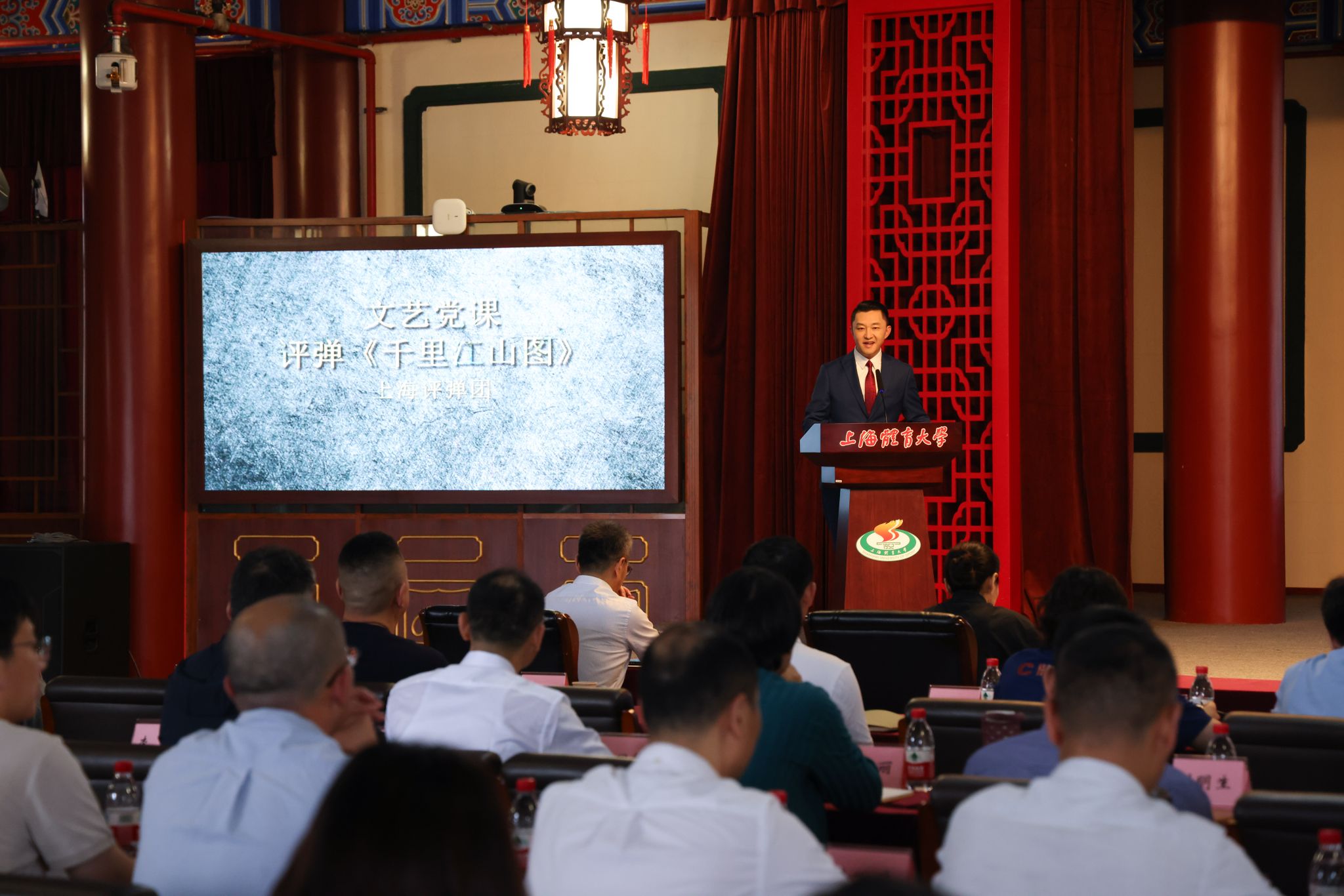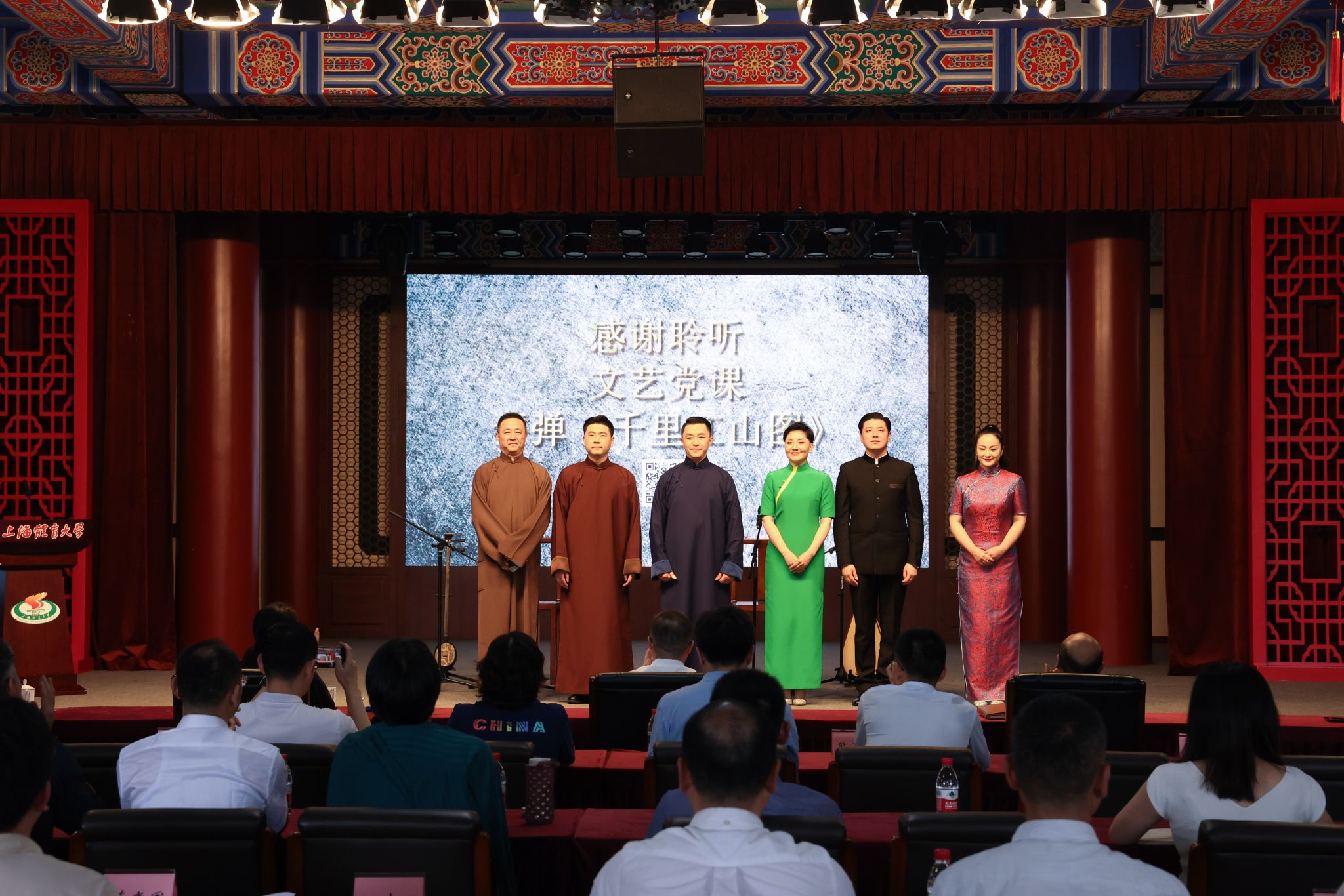 本网讯 时值学校正开展深入贯彻落实中央八项规定精神学习教育之际,在七一建党节来临前,6月23日下午,学校党委举行理论学习中心组(扩大)学习会,一场别开生面的红色文艺党课——《千里江山图》在绿瓦大礼堂精彩开演。