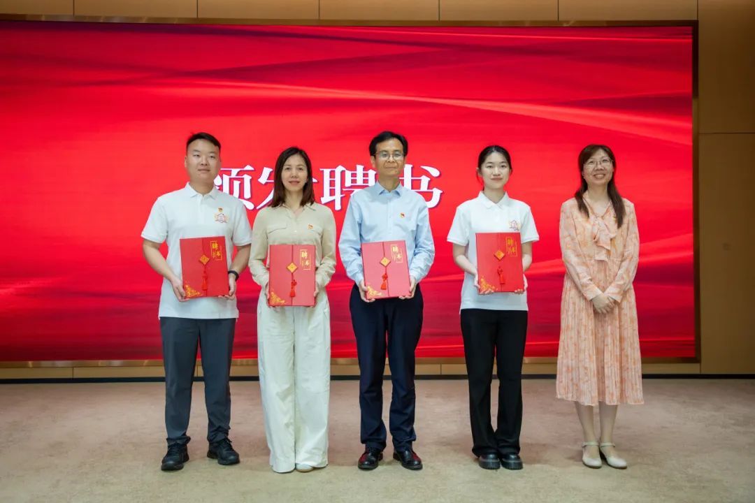 今年会“乡村政工师”项目团队成员胡德平、陈伟、刘星雨和王涛被聘为漕泾镇“乡村政工师”,漕泾镇党委委员王海珏为他们颁发聘书。
