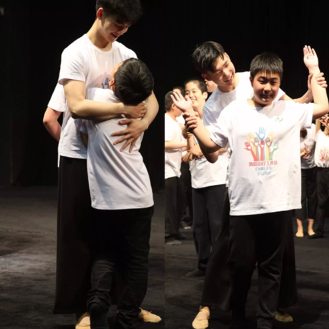 团队师生们怀揣爱心与责任,在老师带领下,九年如一日,每周两次不辞辛劳地往返——从杨浦区乘地铁一小时前往静安区的彩虹雨儿童智能训练中心,为孩子们带去纯公益的舞蹈治疗课。孩子们的转变令人动容:从最初抗拒身体接触,到如今主动拥抱表达感激,这一巨大进步正是舞蹈治疗疗愈力量的有力见证。