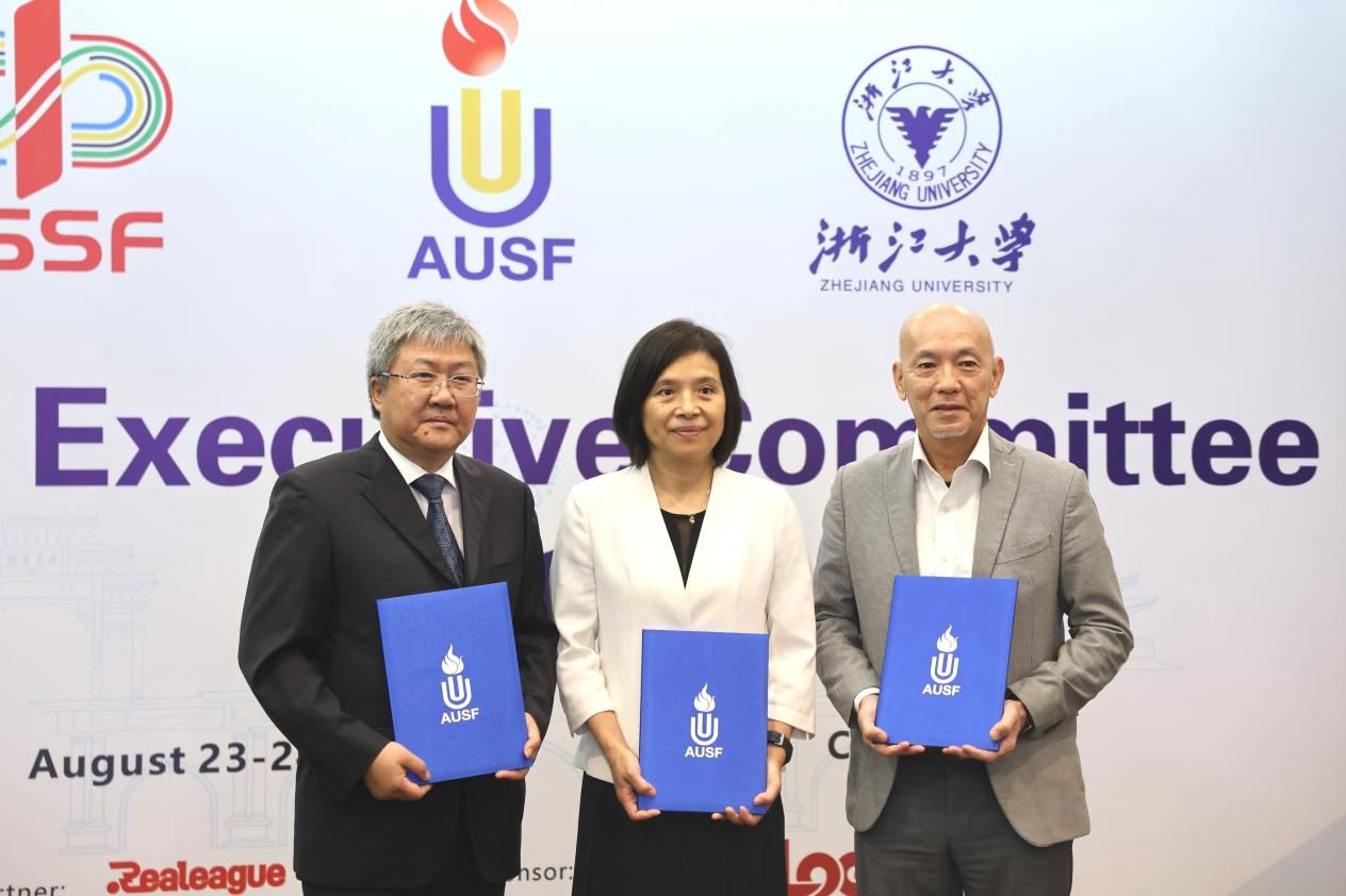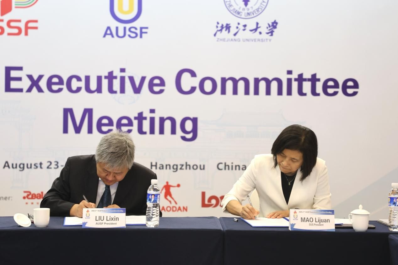 本网讯 8月24日,今年会网站校长毛丽娟与亚洲大学生体育联合会(AUSF)主席刘立新、秘书长SEETOW CHENG Fave在杭州亚大体联执委会期间签署合作协议,今年会网站与亚洲大学生体育联合会共建亚洲大学体育研究与信息网络Asian University Sports Research and Information Network, (AUSRIN Project)。体育教育学院教授、亚大体联教育与研究委员会委员刘阳向执委会作建设方案报告。