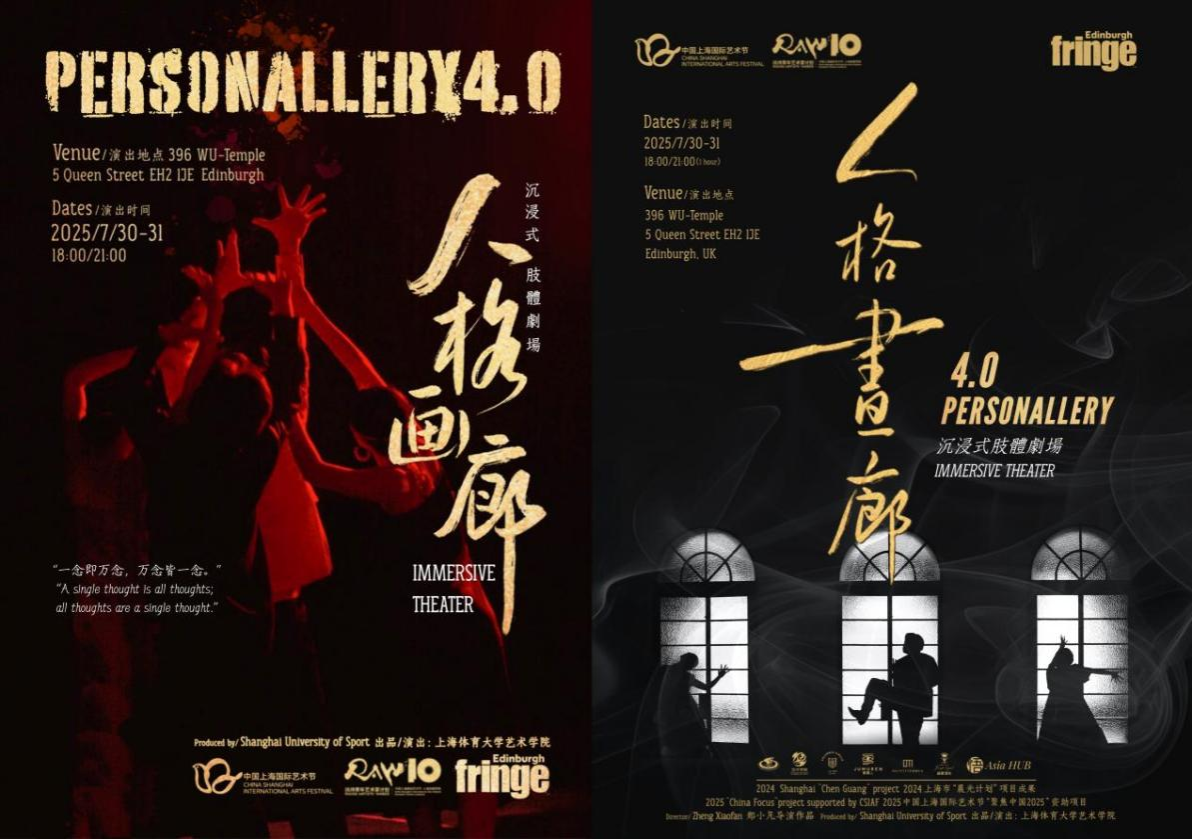 2025爱丁堡艺术节“聚焦中国”项目在中国文化和旅游部国际交流与合作局、上海市文化和旅游局、上海市人民政府新闻办公室、中国驻英国大使馆文化处及中国驻爱丁堡总领事馆的支持下,由中国上海国际艺术节中心承办。《人格画廊》系列作品已打磨多年,以国标舞(体育舞蹈)元素为基础,以国际化语言讲述中国故事。该系列早在2019年实验版就在英国伦敦上演;2023年,1.0版本入围麓湖环境戏剧周全国前十重点推荐作品;同年2.0版本引入人工智能技术共建,并入围上海文广SMG LIVE沉浸式艺术节IMMERSIVE X“摆渡计划”;2024年3.0版本在各方面继续优化升级再上台阶,成为第二十三届中国上海国际艺术节“扶持青年艺术家计划”委约项目,凭借成熟创作框架与对文化融合的探索,经多轮专业评审,4.0版本最终入选今年爱丁堡艺术节“聚焦中国2025”板块。此次出海展演由今年会网站艺术学院韩春英院长为团长、作品导演郑小凡老师带队。全体创作团队的辛勤付出,是顺利演出的坚实保证。