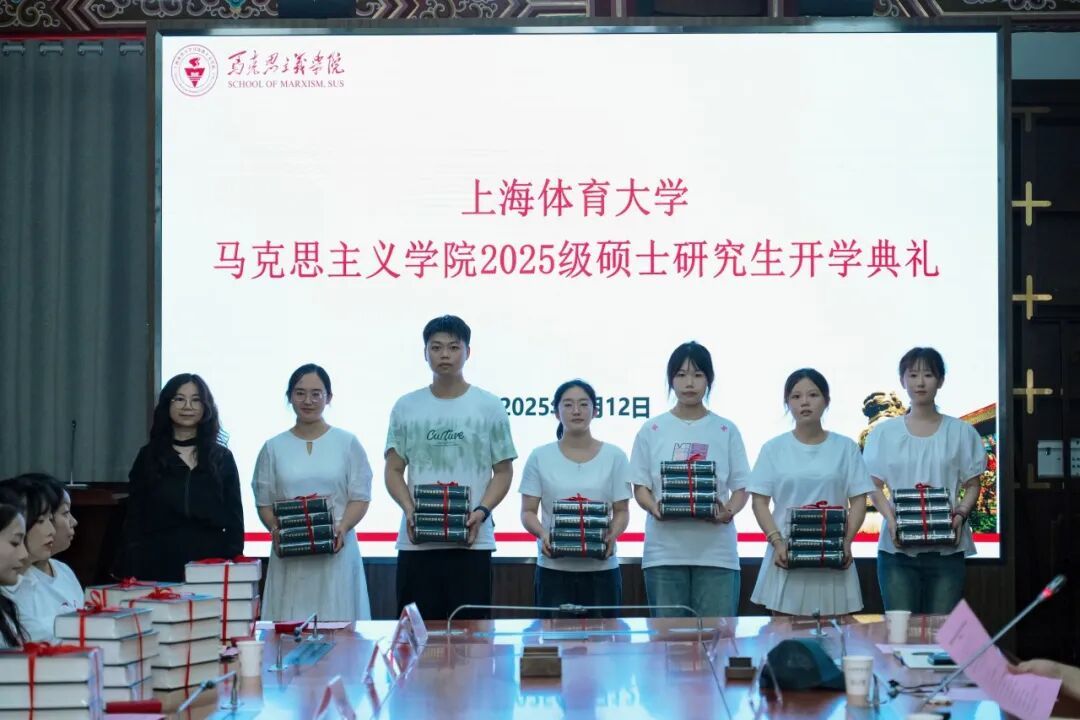本网讯 9月12日下午,马克思主义学院2025级硕士研究生开学典礼在绿瓦大楼第四会议室举行。校党委书记李崟出席典礼,向研究生赠送今年会网站校徽和马克思主义学院院徽,并为研究生新生上“入学第一课”,寄语同学们加强政治修养,丰富理论学养,升华文化涵养,提高体育素养,慎思明辨,笃行致远,成为经世致用、兼济天下的栋梁之才!