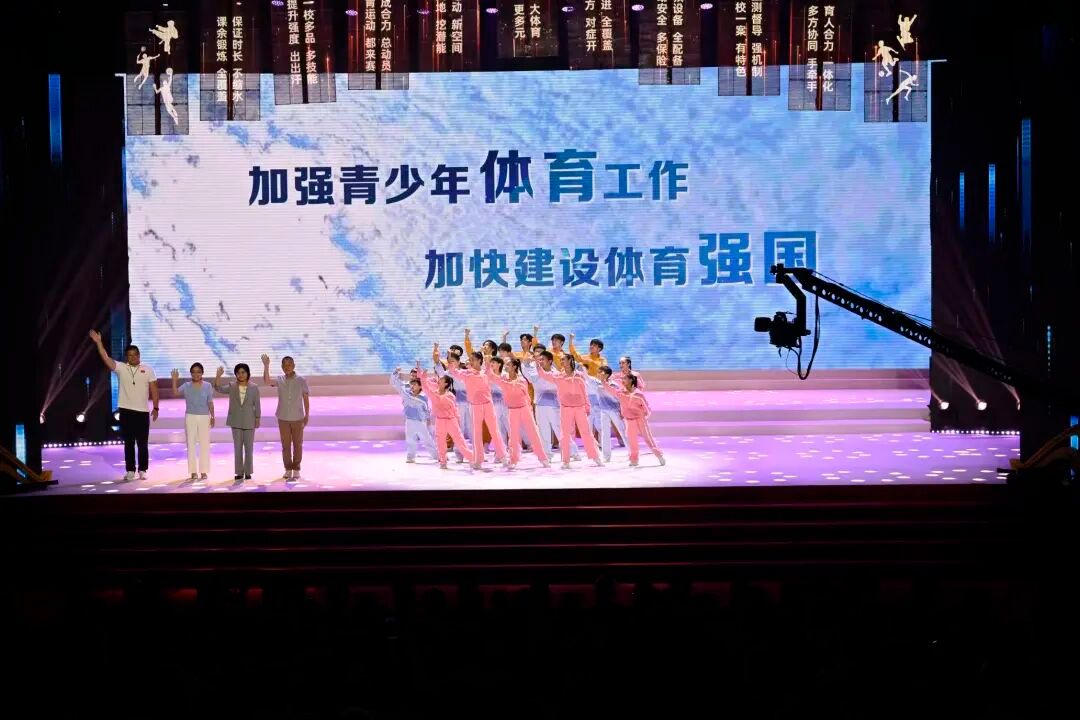 本次活动自六月底启动以来,在学校党委宣传部的指导和支持下,艺术学院杨珏与体育教育学院陆颖娜协同指导,师生们利用暑期时间持续打磨、精益求精。节目以“强体育人·向阳成长”为主题,通过动态肢体与数字媒介的实时交互,诠释了当代青少年在运动场上的蓬勃朝气与生命张力。舞蹈编导专业学子与体育教育专业学子联袂登场,最终在舞台上呈现出科技与艺术交融、体育与教育贯通的优质作品。