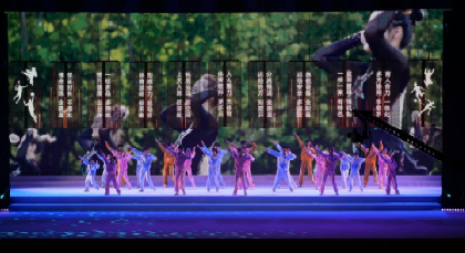 《青春运动场》节目中,艺术体操专项的女生们执圈、带、球,以灵动柔美的身姿,勾勒出流畅而优雅的运动轨迹;舞蹈编导专业的男生们则以充满爆发力的劲健舞律,展现出力量与速度的阳刚之美。“人屏互动”技术更将这种对话推向高潮。尤为惊艳的是投篮瞬间的虚实呼应:舞者腾空跃起,屏幕中一道绚丽的数字轨迹随之划出,篮球应声入网。身体动作与数字影像的精准同步,创造了极具时代感的奇观效果,配合青春昂扬的音乐节奏,构建出一场多维沉浸的视听盛宴,将现场气氛推向沸腾。