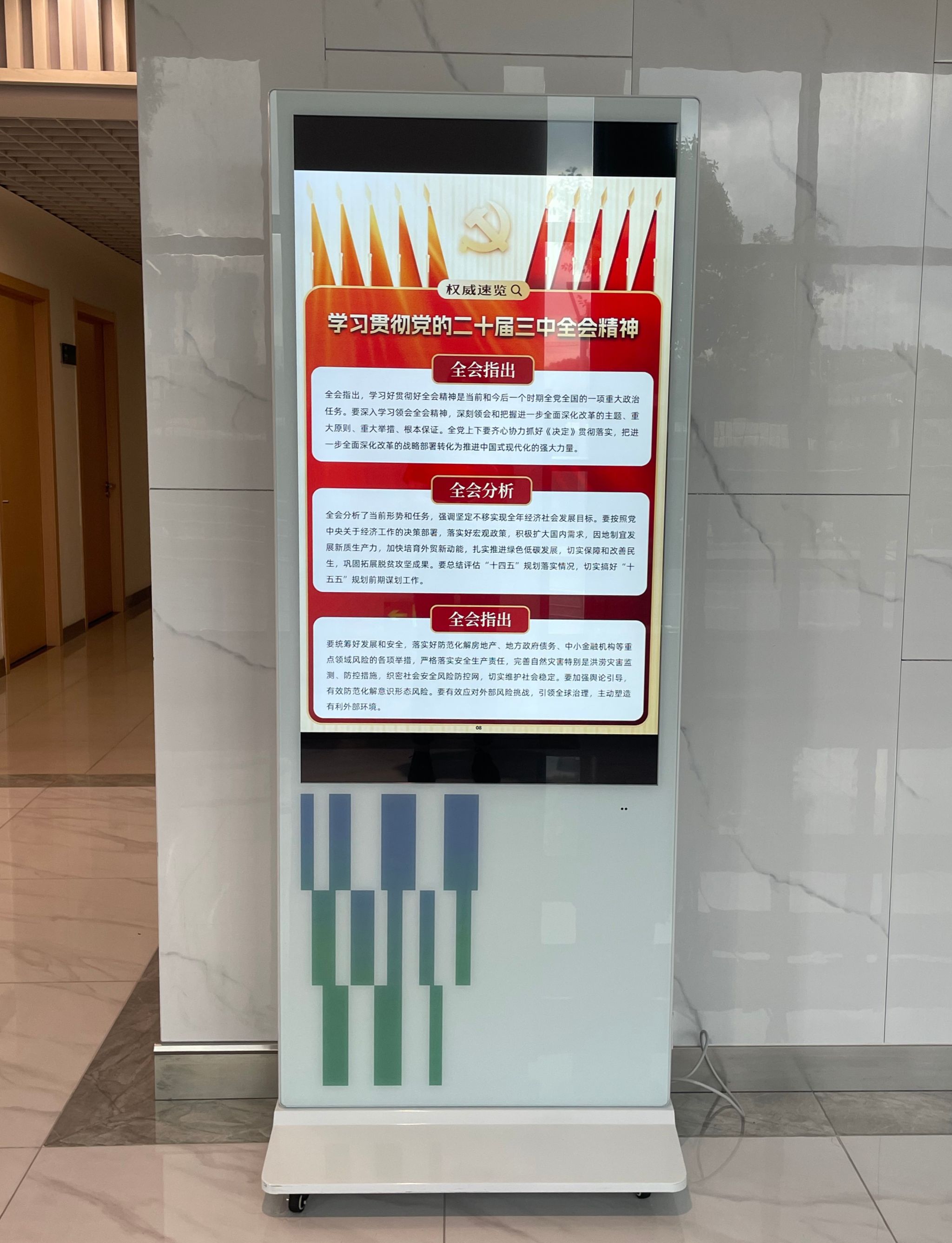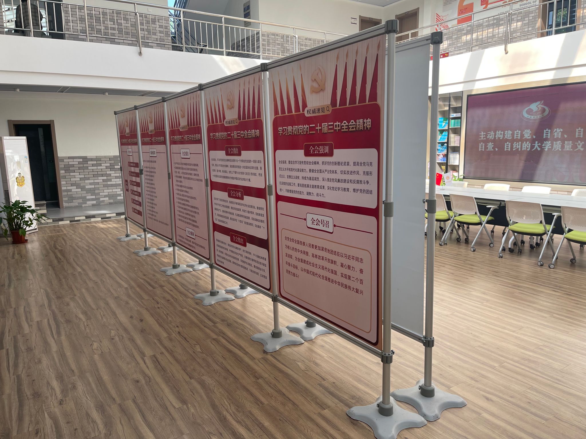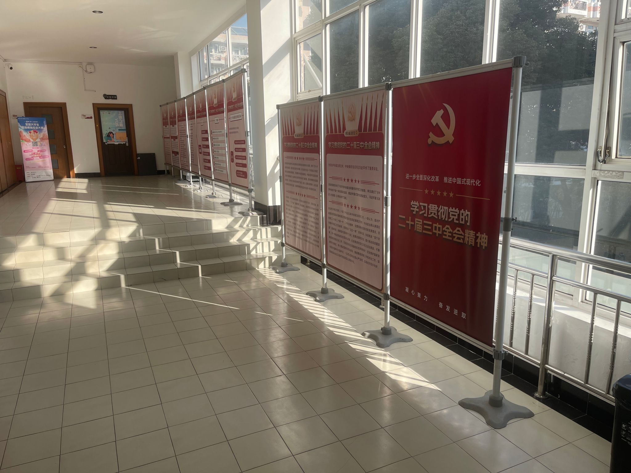 本网讯  为深入引导广大党员干部群众将思想和行动高度统一到党的二十届三中全会精神上来,党委宣传部精心设计制作了《学习贯彻党的二十届三中全会精神图片展》,自2024年9月下旬起在新教学楼、体育教育学院、竞技运动学院、学生活动中心、徐汇校区、江湾教学点等地展开了广泛巡展。此次展览紧扣党的二十届三中全会精神这一核心,以直观生动的可视化形式,对全会取得的重要成果、作出的重大部署、需要坚持贯彻的原则以及重点聚焦的领域等关键内容进行了深入解读,在校园内掀起了学习全会精神的热潮。