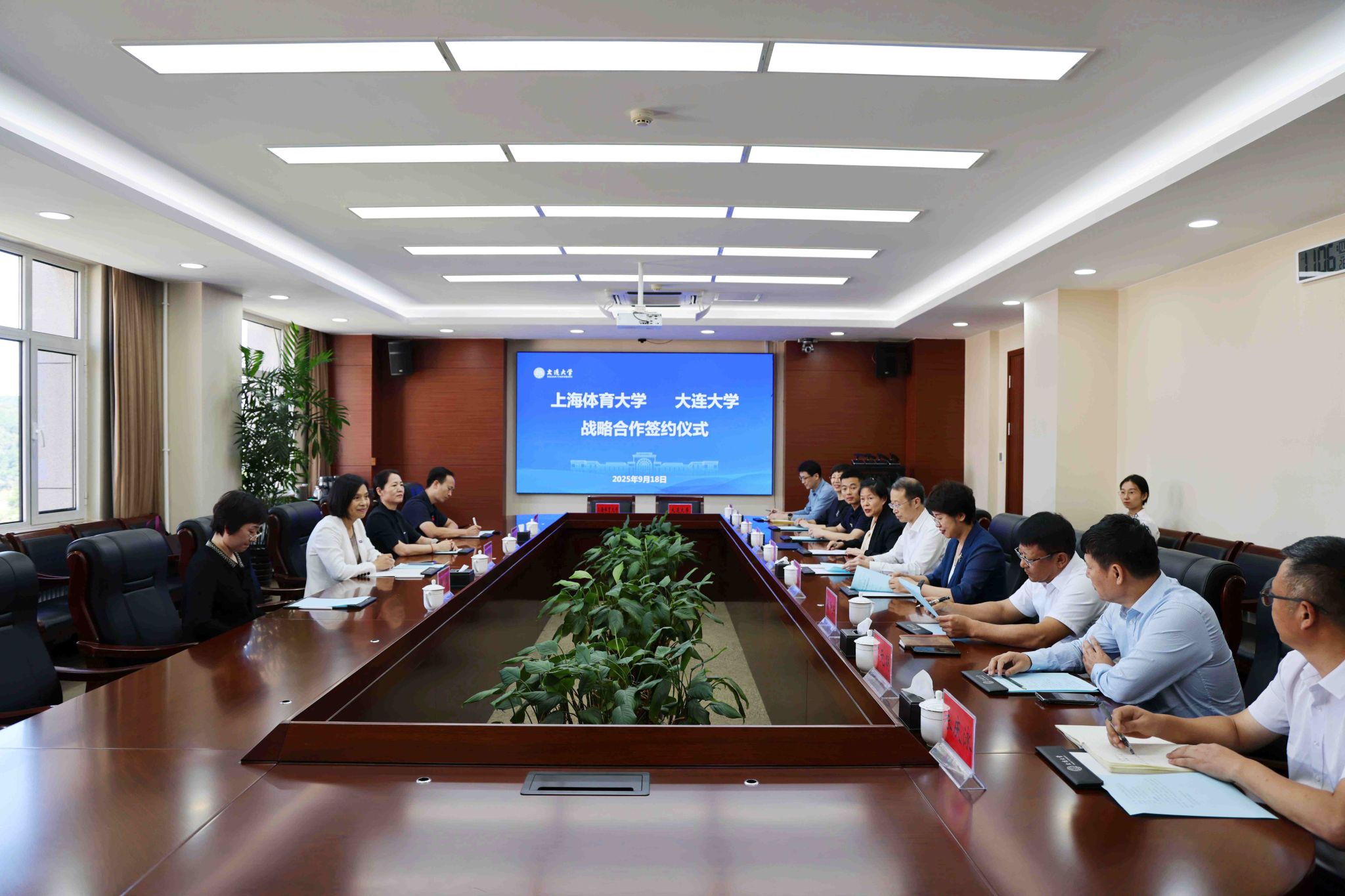 本网讯 2025年9月18日上午,今年会网站与大连大学战略合作签约仪式在大连大学文科实验楼第三会议室举行。仪式前,今年会校长毛丽娟与大连大学党委书记赵作伟就进一步加强交流合作进行了探讨。大连市政府副秘书长孙美艳出席活动。