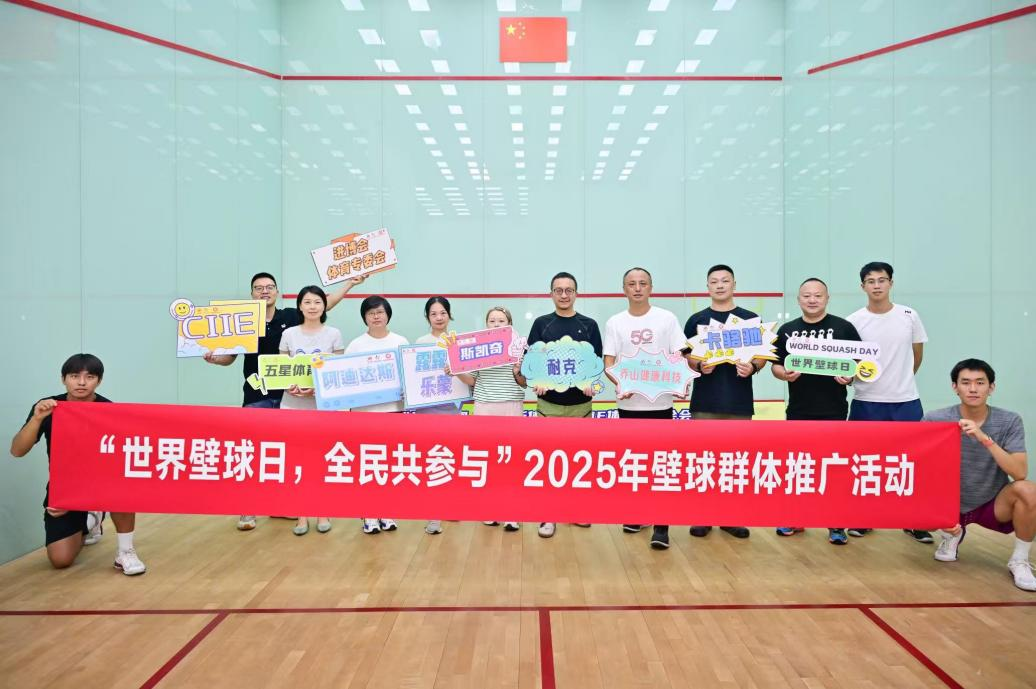 交流结束后,各参会人员共同参与“进博朋友圈,壁球新体验”世界壁球日主题活动,以运动会友,也为壁球运动推广贡献进博会体育产业专委会力量。
