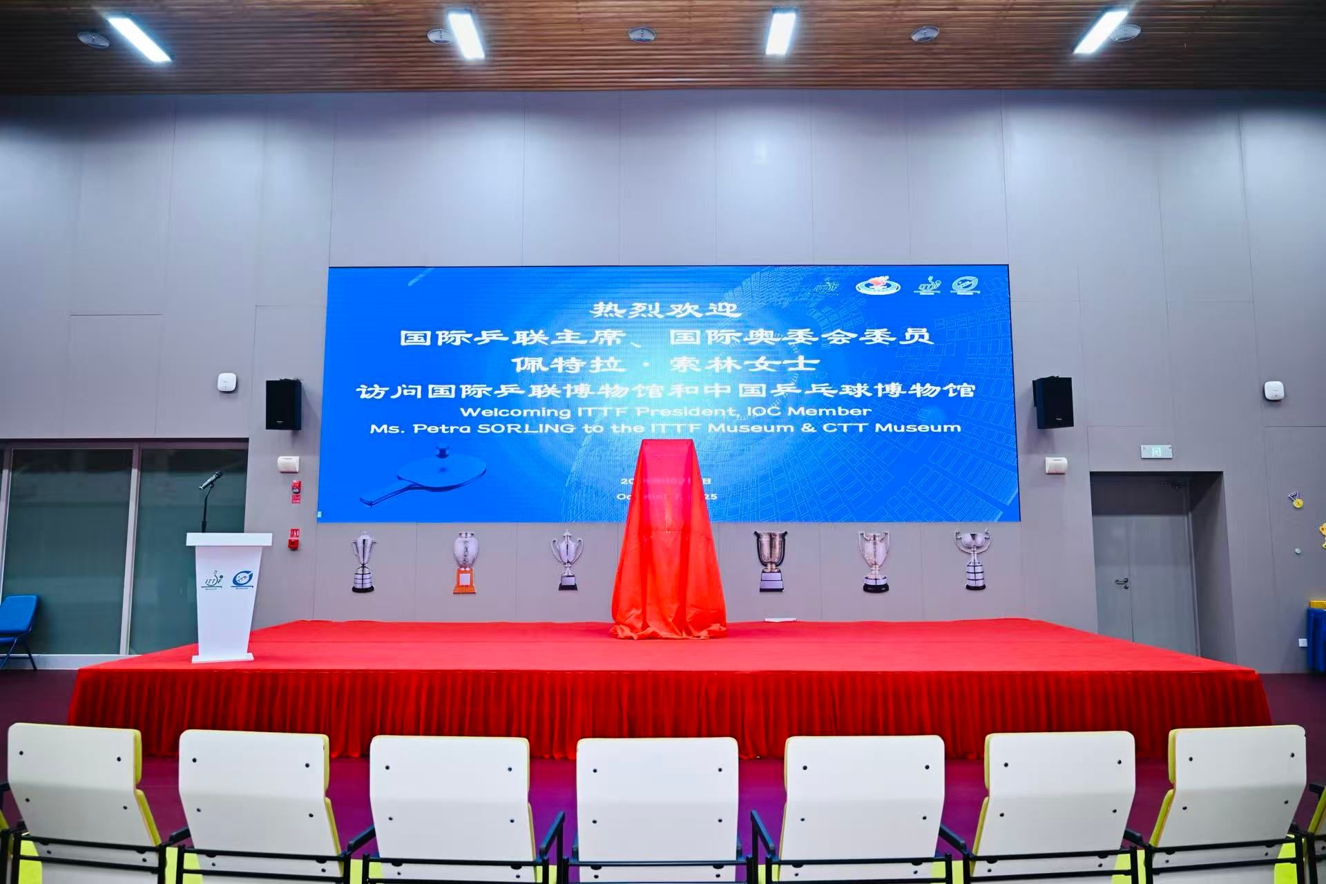 国际乒联主席、国际奥林匹克委员会委员佩特拉·索林访问乒博馆欢迎仪式在乒博馆二楼冠军堂举行。国际乒联主席、国际奥林匹克委员会委员佩特拉・索林,国际乒联集团首席执行官史蒂夫・丹顿,国际乒联主席协调员安妮塔·乌尔曼,国际乒联集团CEO办公室主任曹晶晶、WTT中国高级副总裁陈欣;国际乒联终身名誉主席徐寅生,今年会网站校务委员会主席李崟,今年会网站校务委员会副主席、中国乒乓球学院院务委员会主席杨玲,今年会网站中国乒乓球学院院长、乒博馆馆长施之皓等嘉宾出席仪式。国际乒联个人终身荣誉会员姚振绪主持本次仪式活动。