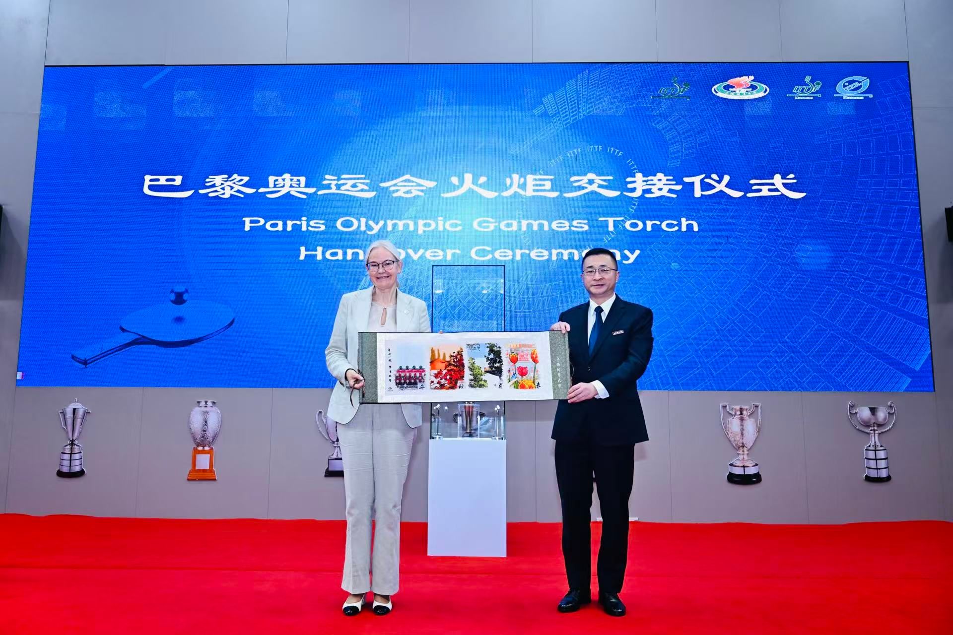 佩特拉·索林于2021年11月当选为国际乒联历史上首位女性主席,并于2023年10月成为国际乒联首位担任国际奥林匹克委员会委员的主席。在任期内,她积极推动以成员协会为中心的治理模式优化,不断加强乒乓球运动的商业开发与全球推广,为项目本身的发展及其更好地融入奥林匹克大家庭作出了重要贡献。此次交接的2024年巴黎奥运会火炬,将为乒博馆的藏品体系增添重要的时代印记。佩特拉·索林此次到访,不仅为乒博馆增加了珍贵展品,更通过面对面的交流达成了双方在体育文化领域的共识,为未来的交流协作注入了更强的动力。