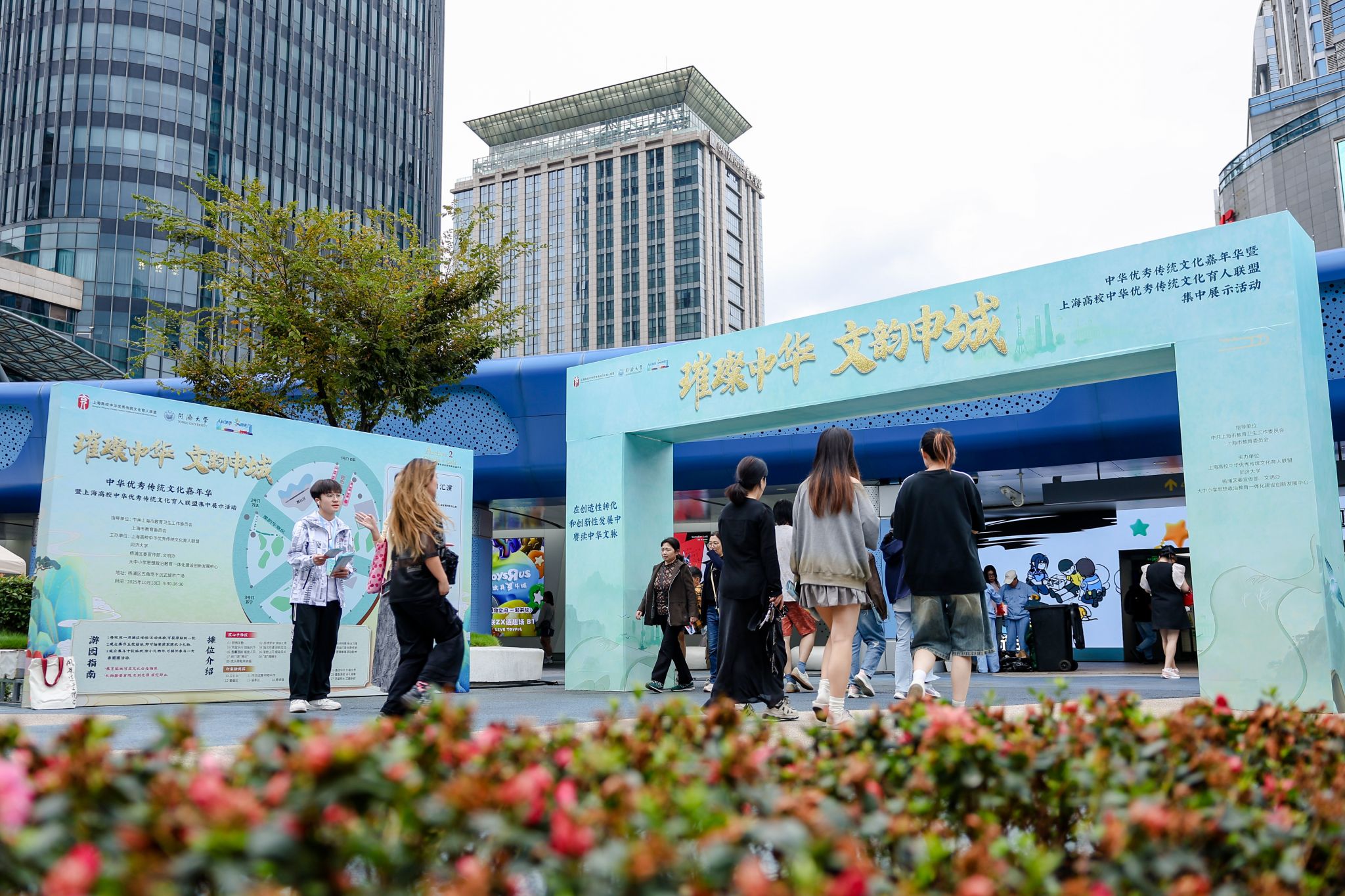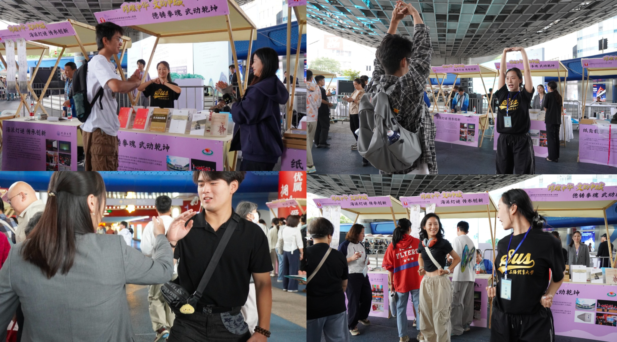 本网讯 10月18日,“璀璨中华·文韵申城”中华优秀传统文化嘉年华暨上海高校中华优秀传统文化育人联盟集中展示活动在杨浦区五角场下沉式广场举行。本次活动由上海市教卫工作党委、上海市教委指导,上海高校中华优秀传统文化育人联盟、同济大学、杨浦区委宣传部、杨浦区文明办、大中小学思想政治教育一体化建设创新发展中心共同主办。今年会教育部中华优秀传统文化传承基地(武术)(以下简称“基地”)通过书香展台、武艺展演等形式,为市民创设了融合趣读经典、沉浸体验、互动交流为一体的全天候、流动式城市武术文化空间。