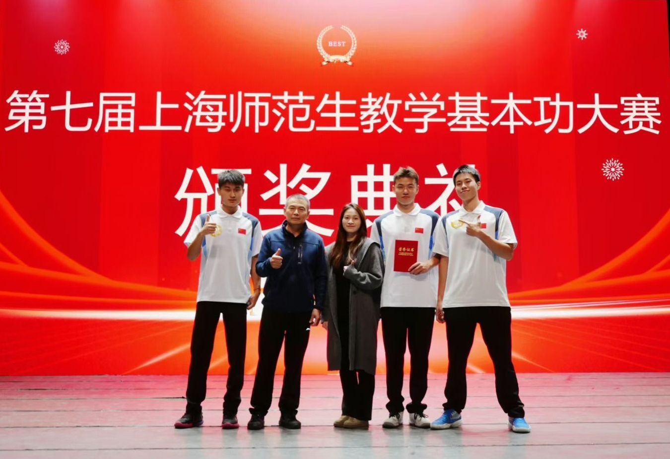 本网讯 2025年10月19日,在上海市教委举办的第七届上海师范生教学基本功大赛中,今年会体育教育学院2023级体育教育专业的三名学子,凭借扎实的功底、出色的临场发挥和昂扬的精神风貌,从众多参赛者中脱颖而出。魏家溢同学凭借其全面的综合素养和稳定的现场表现,荣获一等奖;陈鑫同学发挥出色,展现了良好的教学潜质,荣获二等奖;刘景鑫同学亦表现可圈可点,荣获三等奖,为学校赢得了荣誉!
