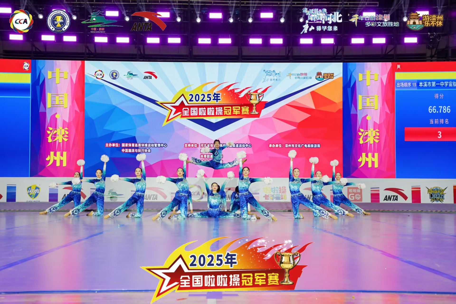 10月30日的决赛现场,灯光汇聚,音乐激昂。队员们以高难度的空中托举、连贯舒展的大跳动作震撼开场。整套动作衔接流畅、节奏精准,迅速点燃全场气氛。尤为可贵的是,7名新队员在关键的托举环节中表现得沉着稳定,与老队员之间配合默契,完成了一次次干净利落的空中定格,将现场氛围一次次推向高潮。每一个眼神的无声交流,每一次呼吸的默契同步都源于训练场上千百次的反复磨合。
