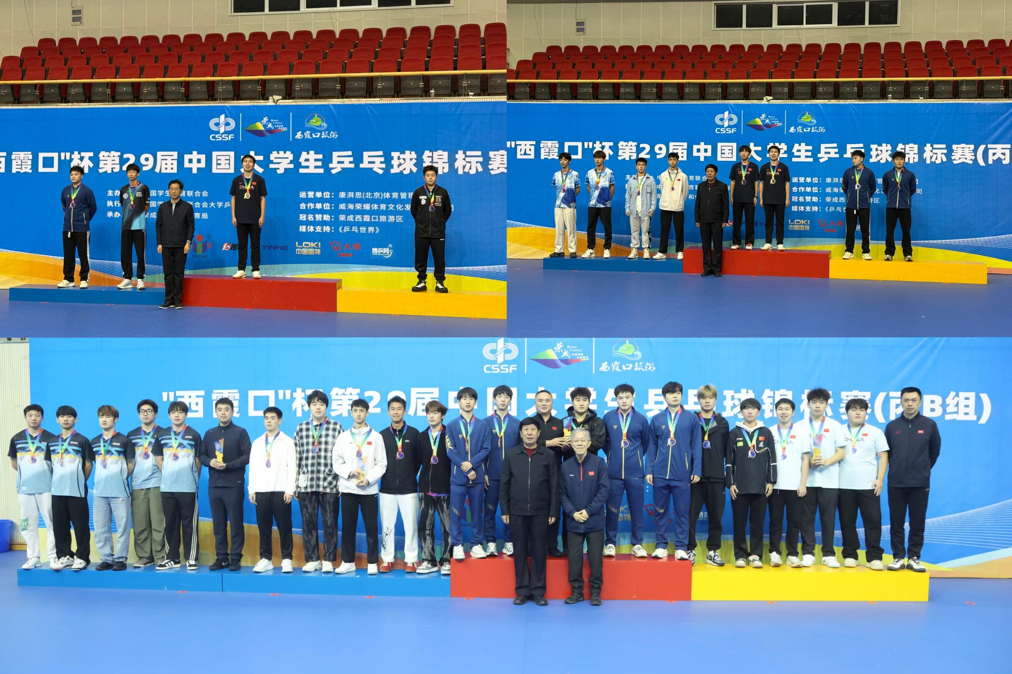 本网讯 2025年10月31日,“第29届中国大学生乒乓球锦标赛(丙B组)”在山东威海荣成市体育中心圆满落幕。本届赛事由中国学生体育联合会主办,中国学生体育联合会大学乒乓球分会执行,荣成市教育和体育局承办。比赛吸引了来自上海交通大学、北京师范大学、四川大学、东南大学、浙江大学、武汉大学、西北工业大学、吉林大学、澳门理工大学等全国51所高校的近500名教练员和运动员参加。选手们在男子团体、女子团体、男子单打、女子单打、男子双打、女子双打和混合双打七个项目中展开了激烈角逐。