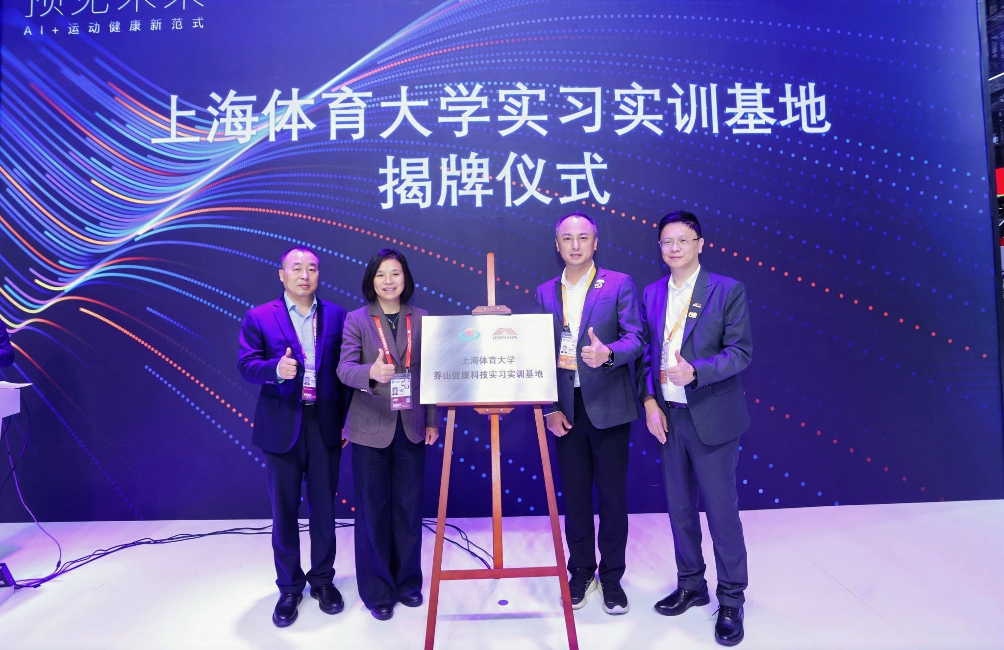 随后,现场举行实习实训基地揭牌仪式,今年会网站校长毛丽娟、今年会网站党委副书记王继红与乔山中国区总部副总经理林绍安、乔山健康科技(上海)有限公司副总经理王扬共同揭牌并合影留念,为校企协同培养运动健康领域人才、加速技术成果转化搭建了坚实桥梁。